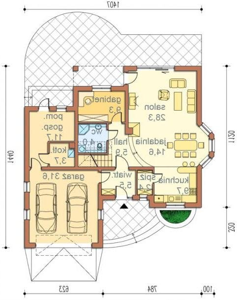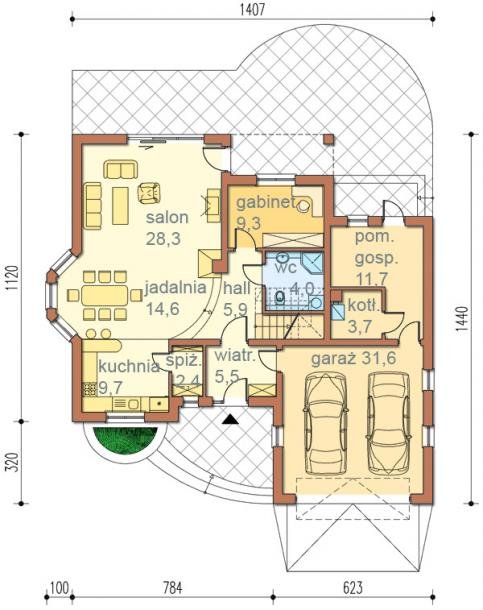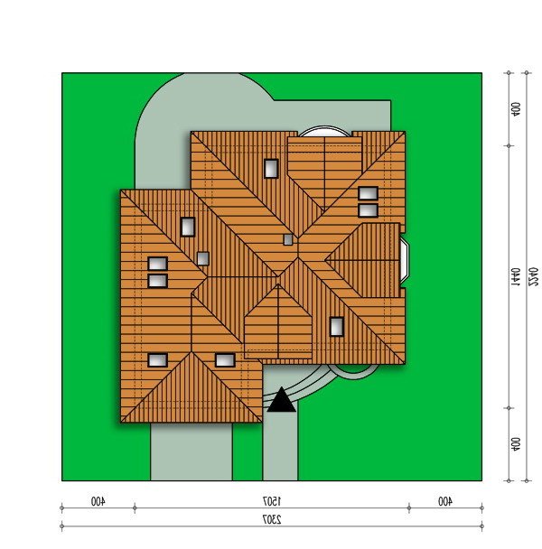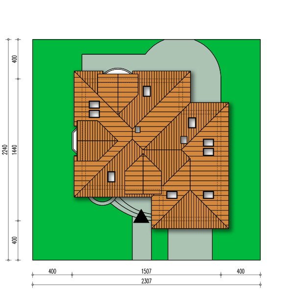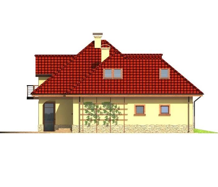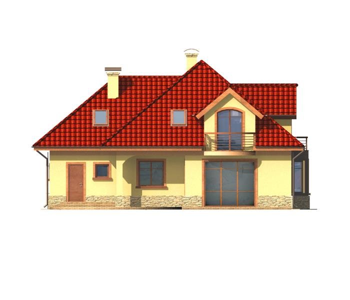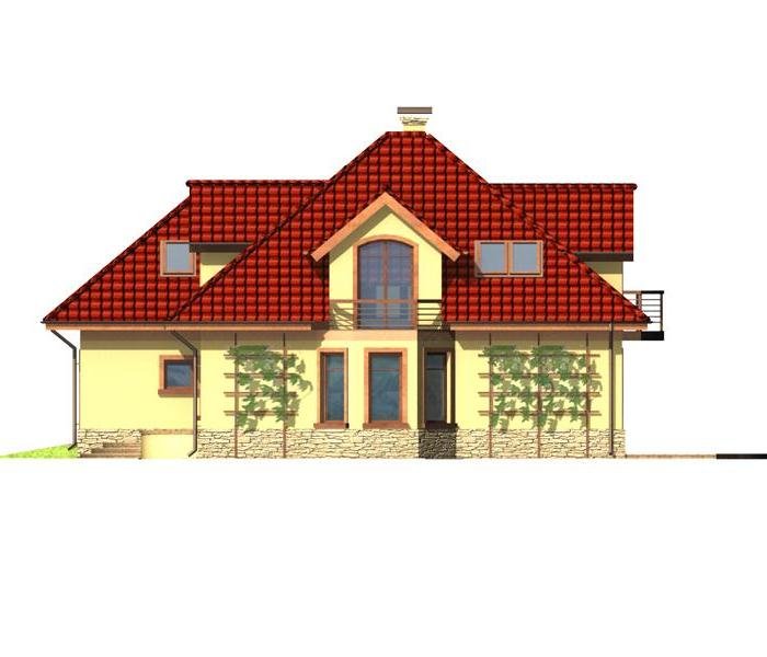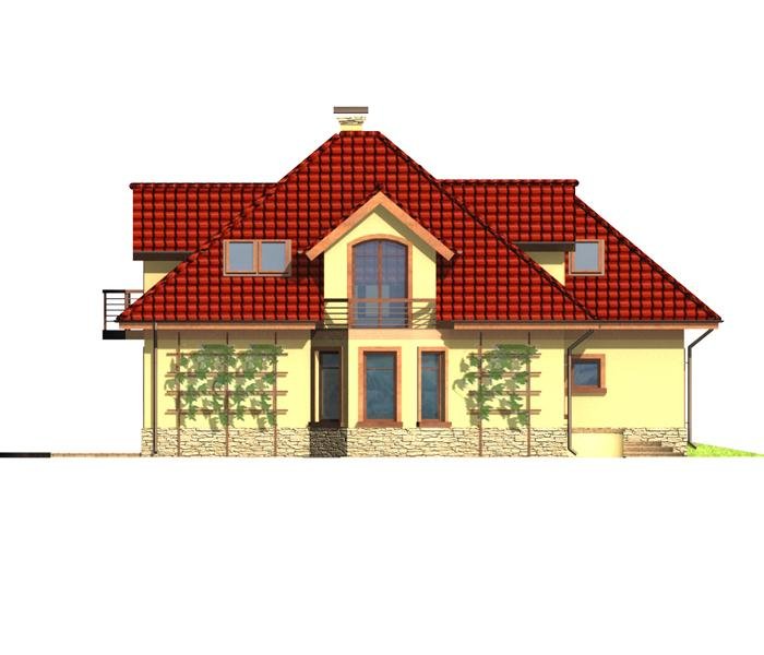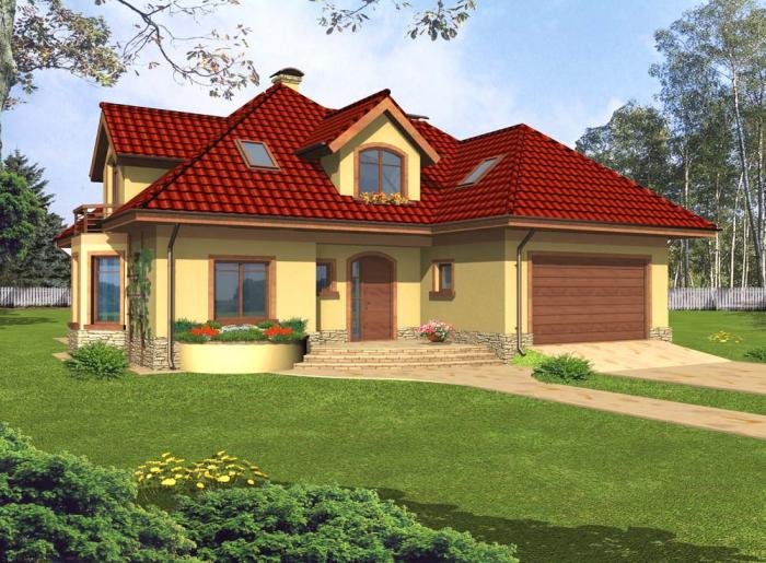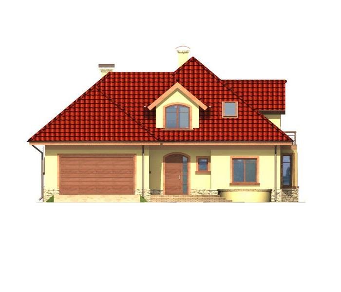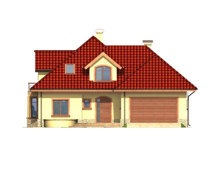 Jest to dom parterowy z użytkowym poddaszem i wbudowanym garażem na dwa samochody. Bryła domu przekryta wielospadowym dachem z lukarnami jest bardzo atrakcyjna wizualnie i będzie wyróżniała się swoim wyglądem wśród sąsiadującej zabudowy.
