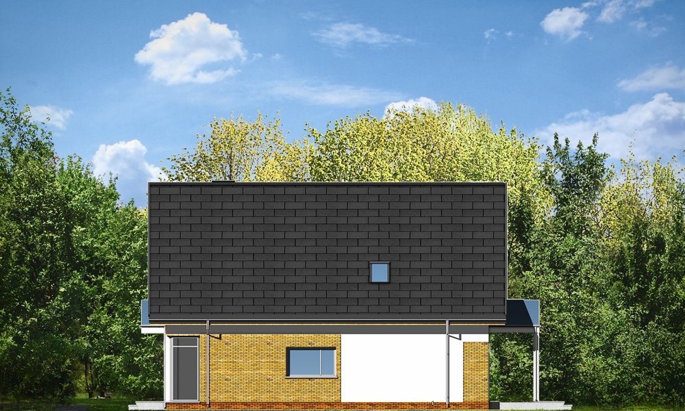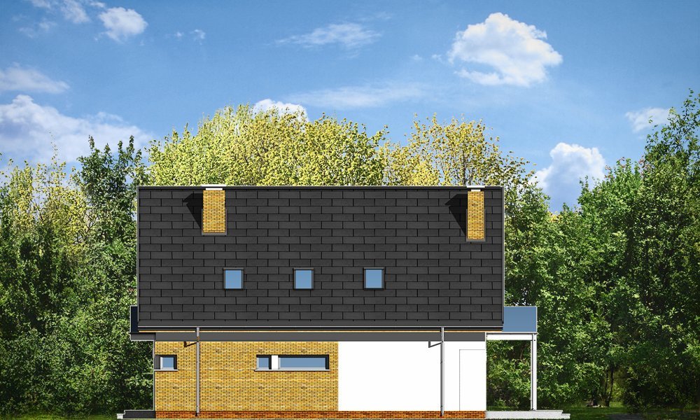 Miejski to przeznaczona dla cztero-pięcioosobowej rodziny willa, o prostej, łatwej w budowie bryle. Parterowy budynek z poddaszem użytkowym, przykryty dwuspadowym dachem. Tradycyjną bryłę domu połączono z nowoczesną stylistyką, materiałami i detalem, dzięki czemu udało się uzyskać bezpretensjonalną współczesną architekturę, pasującą do każdego otoczenia. Elewacje zostały urozmaicone ceglaną okładziną parteru, drewnianymi fragmentami ścian poddasza, oraz oryginalnie zaprojektowanymi oknami. Do tego frontowy i ogrodowy szczyt przyozdobiono balkonami. Balkon w elewacji tylnej jest jednocześnie zadaszeniem części tarasu. Duże przeszklenia okien i drzwi balkonowych otwierają wnętrze domu na ogród, więc taras jest naturalnym przedłużeniem salonu. We wnętrzu, na parterze zaprojektowano dużą przestrzeń dzienną, z salonem, jadalnią, holem i częściowo otwartą kuchnią. Dodatkowo na parterze zaplanowano kotłownię i pokój - gabinet lub sypialnię. Na poddaszu znajdują się trzy duże sypialnie, w tym sypialnię rodziców z własną garderobą, oraz dużą łazienką. Dom jak na swoją wielkość jest bardzo przestronny, poszczególne pomieszczenia w nim są obszerne. Prosty i logiczny układ funkcjonalny powoduje, że każdy metr kwadratowy powierzchni jest właściwie wykorzystany. Pracownia posiada wersję odbicia lustrzanego projektu.