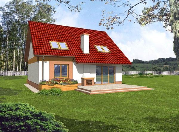 Jest to nieduży niepodpiwniczony dom z użytkowym poddaszem, przeznaczony dla 4-5 osobowej rodziny. Dom ma zwartą bryłę - na planie prostokąta. Małe skomplikowanie bryły i przekrycie dwuspadowym dachem sprawia, że jest tani i łatwy w realizacji.