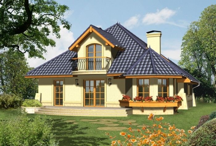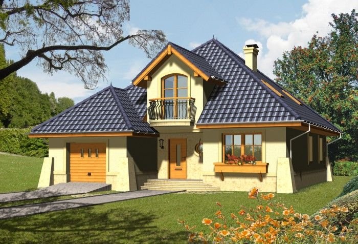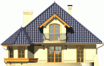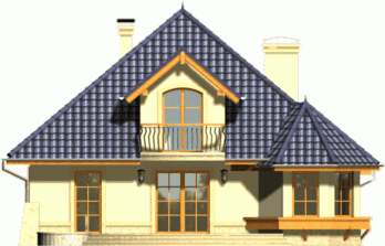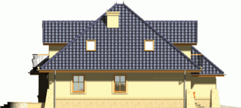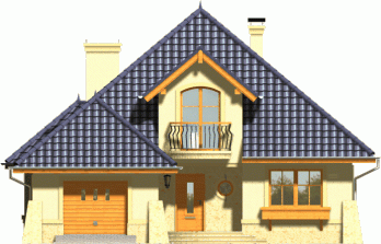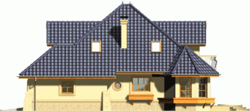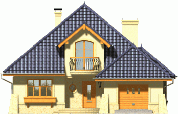 Dom wyróżnia się reprezentacyjną fasadą frontową z atrakcyjnie wyglądającym balkonem ocieniającym wejście. Od strony ogrodu uwagę przykuwa wykusz jadalni połączony z łukowym tarasem.