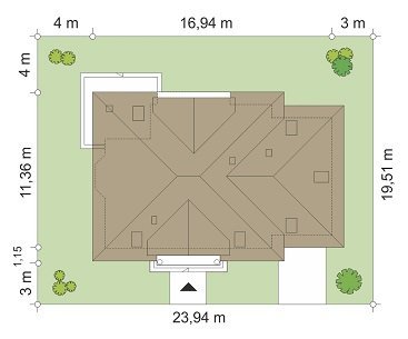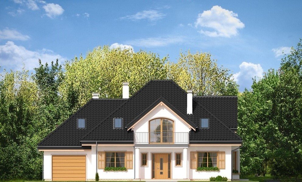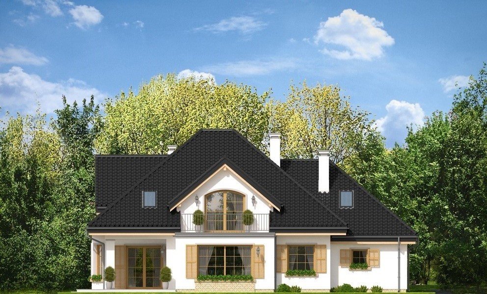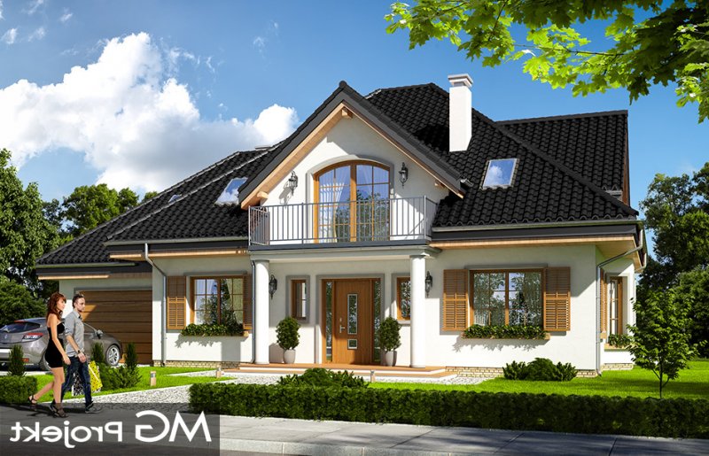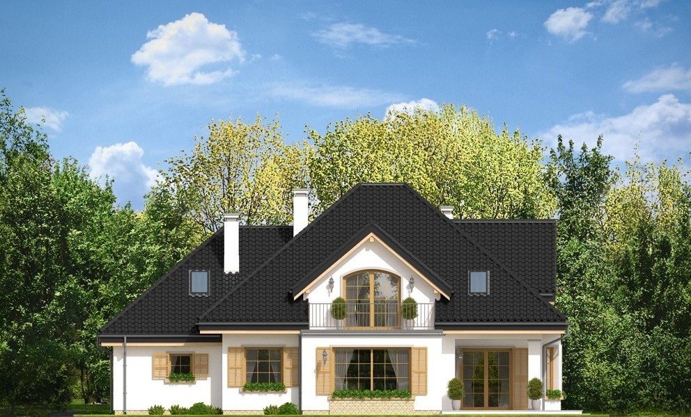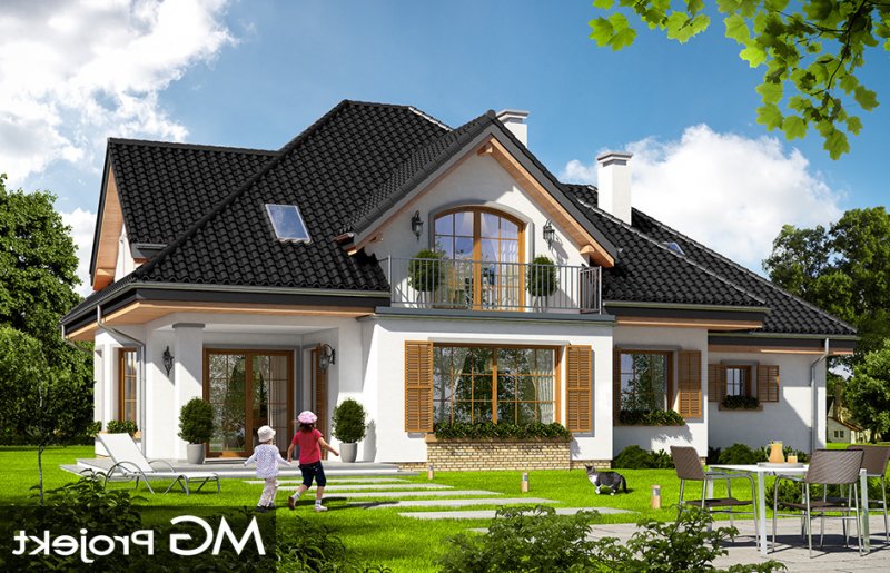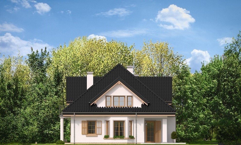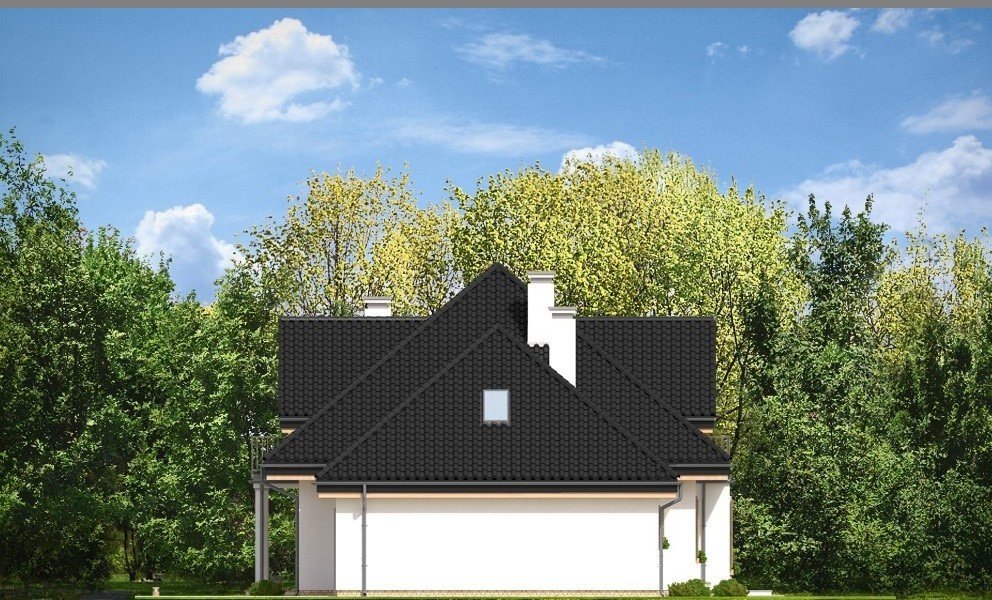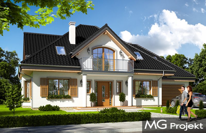 Ofelia 3 jest kolejną wersją projektu z serii domów „Ofelia”. Jest to projekt zmniejszony w stosunku do bazowej wersji, z pojedynczym garażem i z dodatkowym lokalem na parterze : mieszkaniem dla seniorów lub dorosłych dzieci, albo przestrzenią biurową. Ofelia 3 to projekt jednorodzinnego domu, parterowy z poddaszem użytkowym, przykryty czterospadowym dachem, z dobudowaną częścią garażową. Tradycyjna architektura domu, z dworkową bryłą, łączy się z nowoczesnymi materiałami i detalami. Całość zyskuje dzięki temu ponadczasowy charakter. Front domu został zaakcentowany szeroką lukarną z balkonem wspartym na kolumnach. Wejście do domu szerokimi drzwiami z naświetlami bocznymi jest bardzo reprezentacyjne. Od strony ogrodowej elewacja urozmaicona jest lukarną z balkonem, wykuszem salonu z pięknym nisko schodzącym oknem, oraz podcieniem częściowo zadaszającym taras. Wnętrze domu : na parterze wydzielono część dzienną domu, oraz dodatkowy lokal ( mieszkanie, lub na przykład biuro ), do którego dostajemy się z obszernego przedsionka. W części dziennej mamy salon z jadalnią i holem, oraz kuchnię ze spiżarnią. Dodatkowo z boku domu dobudowany jest garaż z kotłownią ( część garażową można połączyć z domem dodatkowymi drzwiami ). Na poddaszu zaprojektowano trzy sypialnie z dużą łazienką, oraz dodatkowy pokój nad garażem. Sypialnia rodziców posiada własną garderobę, oraz balkon z widokiem na ogród. Ofelia 3 to świetna propozycja dla wielopokoleniowej rodziny, albo dla Inwestorów prowadzących swój biznes w domu. Budynek na dość prostą konstrukcję. Jest łatwy w budowie, a dzięki energooszczędnym rozwiązaniom będzie niedrogi w eksploatacji. Ofelię 3 można łatwo dostosować do standardu NF40. Zapraszamy.