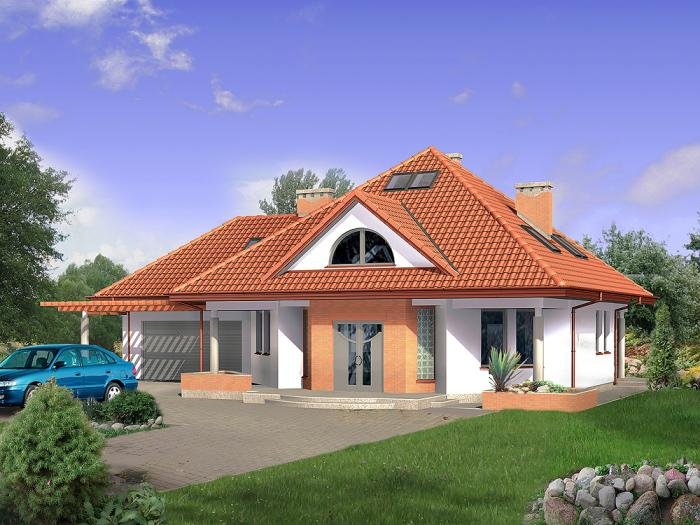 dach dwuspadowy z pokryciem z dachówki ceramicznej, cementowej lub blaszanej