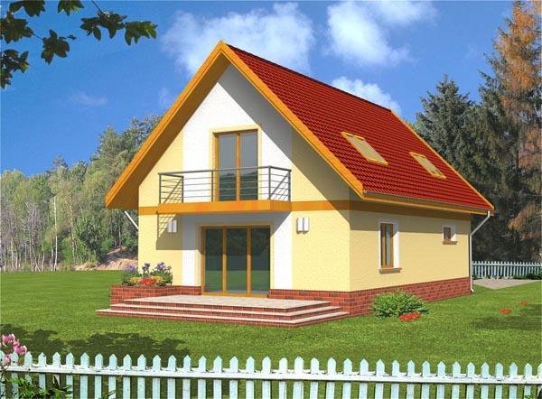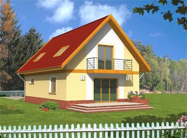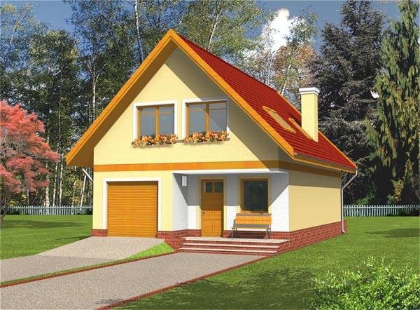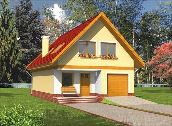 Jest to niewielki, wygodny, parterowy dom z użytkowym poddaszem i wbudowanym garażem, przeznaczony dla 4-5 osobowej rodziny. Dom ma zwartą bryłę - na planie prostokąta z lekko wysuniętym garażem. Bardzo prosta bryła i przekrycie dwuspadowym dachem sprawia, że jest tani i łatwy w realizacji.