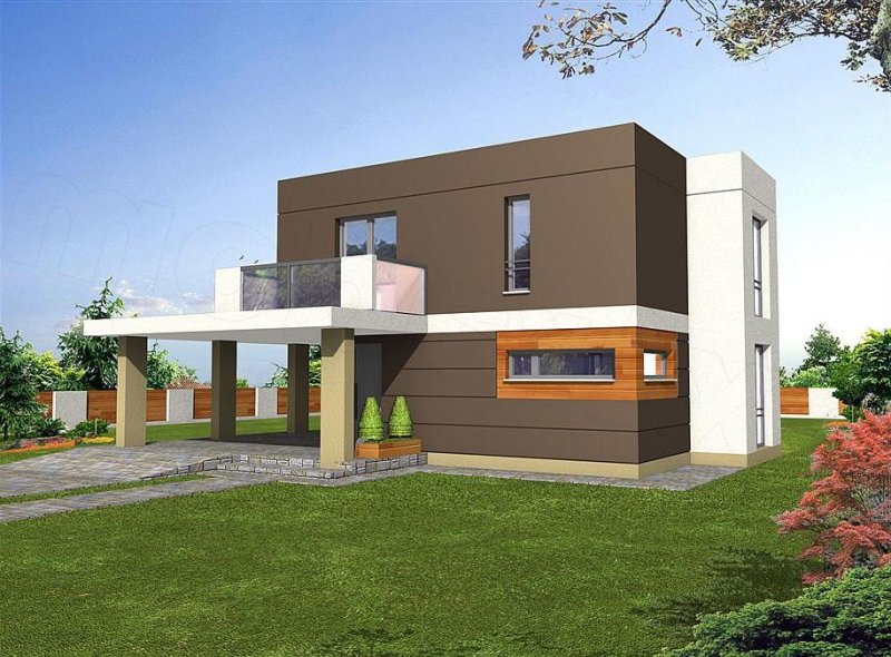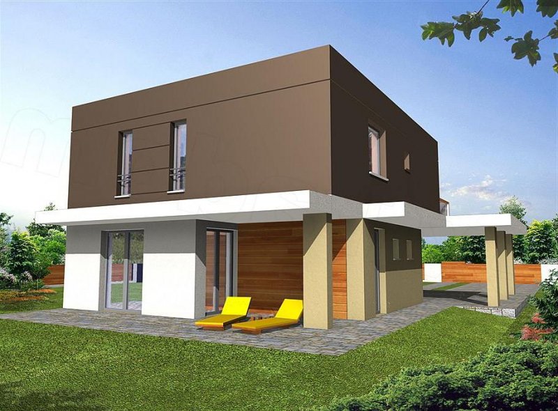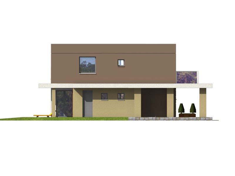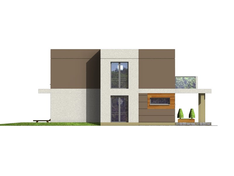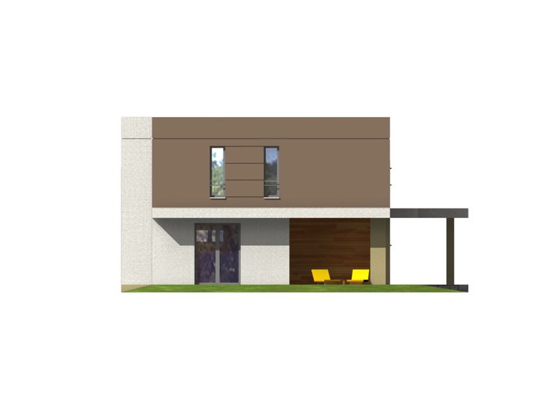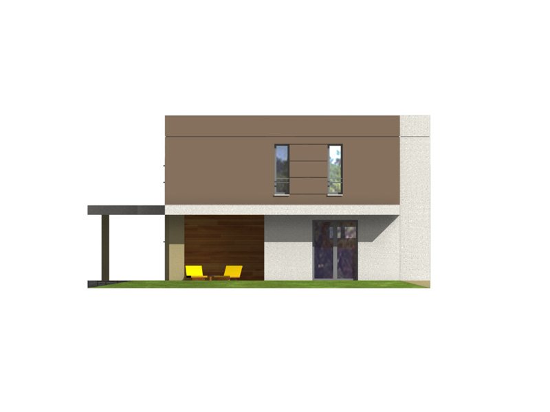 Projekt domu Ron (Energo) to idealna propozycja dla osób posiadających średniej szerokości działkę. Bryła budynku posiada formę typową, więc będzie się dobrze prezentował niezależnie od otoczenia. Dom został zaprojektowany z myślą o zabudowie wolnostojącej. Projekt jest idealną propozycją dla osób zainteresowanych domem z dachem płaskim, dzięki czemu budynek nowocześnie się prezentuje. Projekt Ron (Energo) to dom piętrowy, dzięki czemu mamy możliwość zagospodarowania większej powierzchni. Autor projektu przewidział w nim ciekawie prezentującą się strefę dzienną. Tworzy ją między innymi funkcjonalna kuchnia, która spełni marzenie każdej gospodyni. Strefę dzienną tworzy także przestronny salon z jadalnią, dzięki czemu domownicy mogą wspólnie integrować się w jednym miejscu. W projekcie uwzględniono jedną komfortową łazienkę na parterze i jedną na piętrze. W domu znajdują się trzy wygodne sypialnie, co sprawia iż jest on doskonałym wyborem dla 2-4 osobowej rodziny. Przestrzeń można wykorzystać także jako pokój dla gości lub gabinet. Taras daje możliwość kontaktu z przyrodą i sprzyja wypoczynkowi. Dla urozmaicenia projektu autor zaplanował werandę, która dodaje uroku i jest niezwykle funkcjonalnym miejscem. Zalecana przez architekta technologia murowana zapewnia trwałość i solidność konstrukcji. Jego wygląd zewnętrzny uwydatnia cechy charakterystyczne dla stylu nowoczesnego, co jest idealnym rozwiązaniem dla osób ceniących najnowsze rozwiązania.