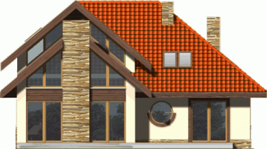 Zdecydowany charakter zewnętrza domu, uzyskany dzięki plastycznemu wykorzystaniu jego elementów, będzie podkreślał wyrobiony gust jego przyszłych mieszkańców