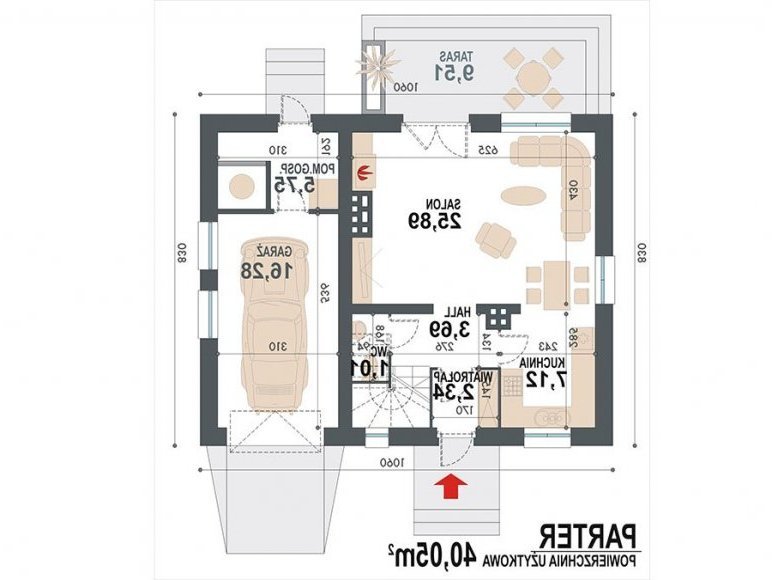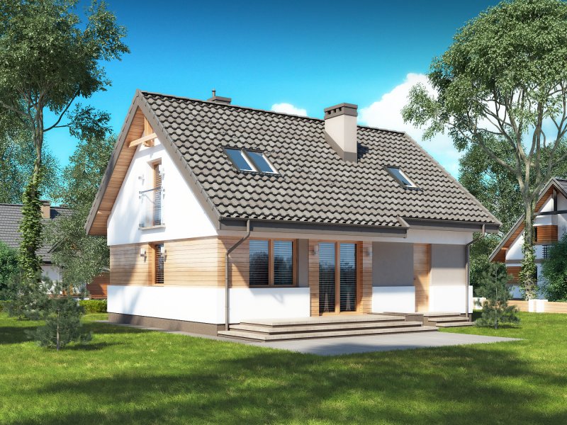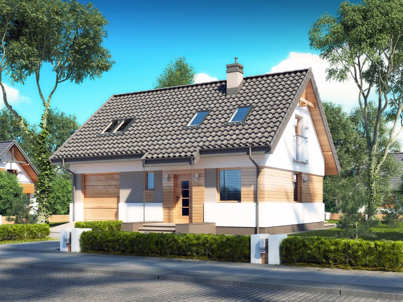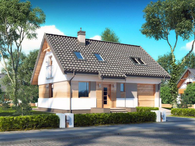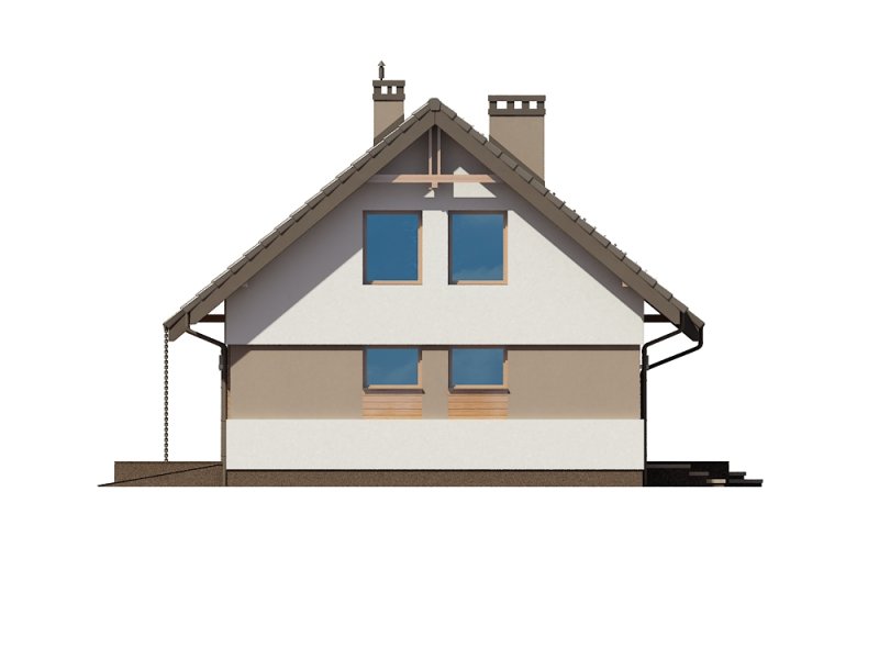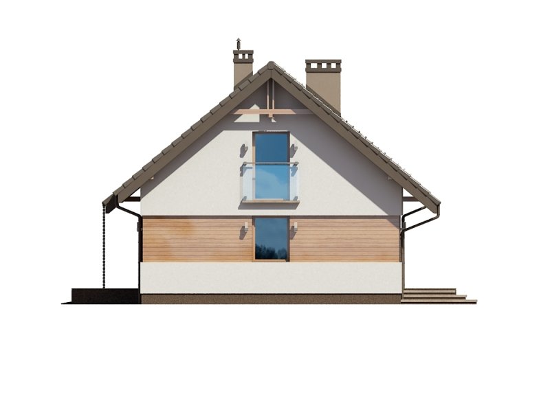 Rusałka N to nowy wariant świetnie sprzedającego się projektu Rusałka w wersji tradycyjnej, który jak dotąd wpisał się w naszą ofertę sprzedaży jako dom dla ludzi ceniących standardowe, minimalistyczne i tanie w realizacji rozwiązania. Budynek posiada zwartą formę; jego dużą zaletą jest optymalne wykorzystanie przestrzeni. Za względu na powierzchnię domu działka potrzebna pod jego zabudowę nie musi być duża. Parter zajmuje strefa dzienna, którą tworzą: wiatrołap, wc, otwarta kuchnia, jadalnia i salon. Pomieszczenie gospodarcze znajduje się na tyłach garażu. Prowadzi do niego oddzielne wejście od strony ogrodu - jest to duże ułatwienie jeśli chodzi np. o wnoszenie opału do kotłowni. Schody usytuowane tuż przy wejściu prowadzą na zaciszne poddasze. Strefa nocna to trzy sypialnie, łazienka i garderoba. Jedna z sypialni posiada oddzielną garderobę.