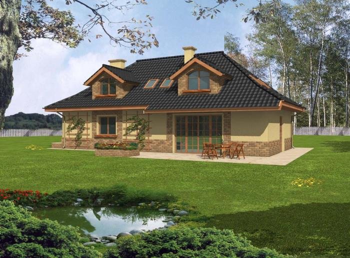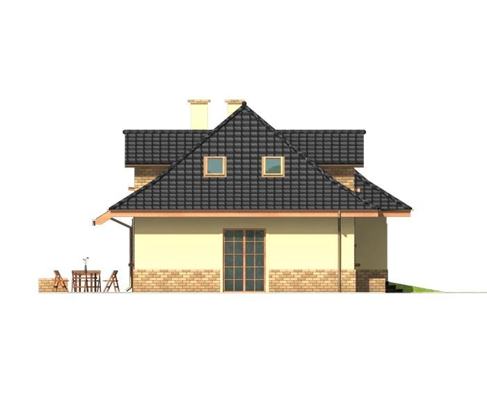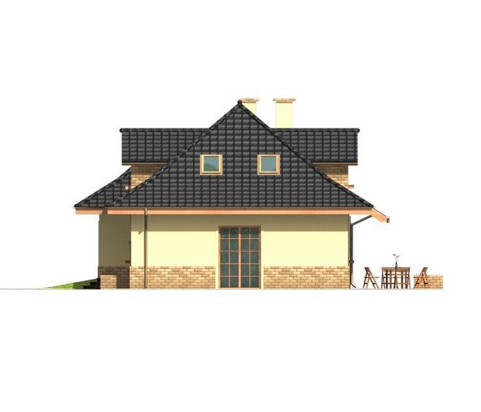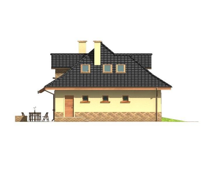Jest to wygodny, reprezentacyjny dom o niepowtarzalnym stylu. Dom jest niepodpiwniczony z użytkowym poddaszem i wbudowanym dużym dwustanowiskowym garażem, przeznaczonym dla 4-6 osobowej rodziny.
