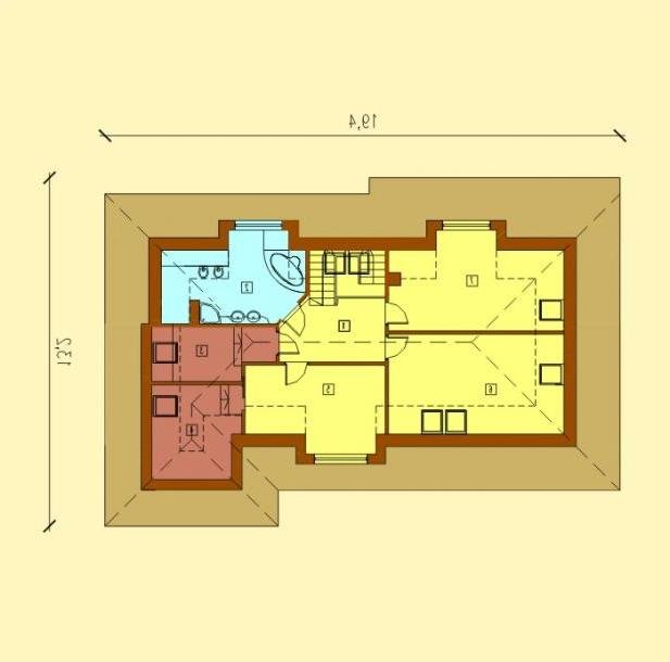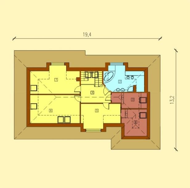 Istnieje możliwość innego podziału poddasza, przez co, bez skomplikowanych zmian można wygospodarować dodatkową sypialnie, garderobę lub łazienkę.