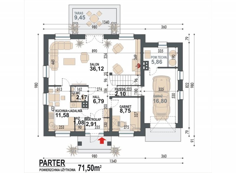 Projekt Sindbad to idealny dom dla osób ceniących tradycyjne rozwiązania oraz oszczędność. Klasyczna, zwarta kubatura oraz dobrze wykorzystana przestrzeń wewnątrz domu - to główne zalety tego projektu. Strefa dzienna usytuowana na parterze obejmuje duży salon z wyjściem na taras, kuchnię połączoną z jadalnią, toaletę, a także pokój, który można przeznaczyć na gabinet lub sypialnię dla gości. Strefę nocną projektu Sindbad tworzą pomieszczenia znajdujące się na poddaszu. Na jednym poziomie znajduje się sypialnia dla rodziców, a wyżej - dwie sypialnie, łazienka, garderoba oraz pralnia. Poddasze jest więc bardzo funkcjonalne.