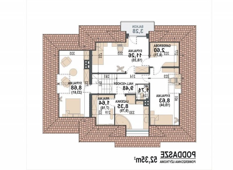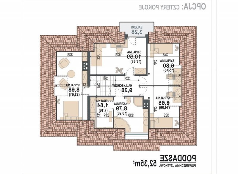 | dach | czterospadowy o konstrukcji drewnianej z pokryciem z dachówki ceramicznej, cementowej lub blachodachówki |