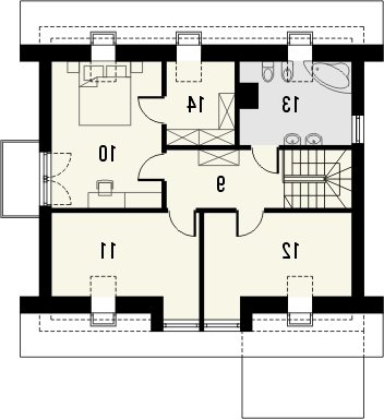 Tetris to dom wolnostojący z wieloma miejscami na szafy, także wbudowane, oraz z garderobą przy największej sypialni na poddaszu.