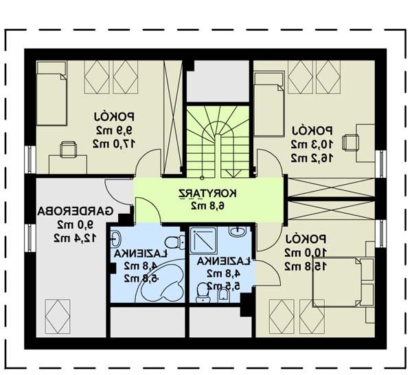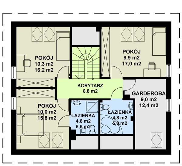Dużym atutem tego domu jest możliwość zaadaptowania, wykończenia w pierwszej fazie tylko parteru. Możliwość taką daje układ funkcjonalny parteru gdzie znajdują się aż dwie sypialnie dla rodziców i jednego dziecka.
