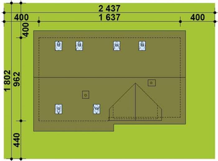 - Kąt nachylenia dachu 40.00°