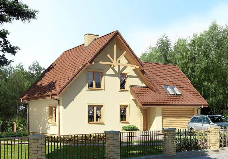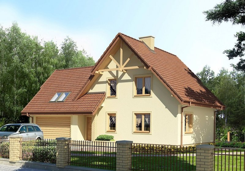 * jednorodzinny dom parterowy z poddaszem użytkowym i garażem dwustanowiskowym, niepodpiwniczony