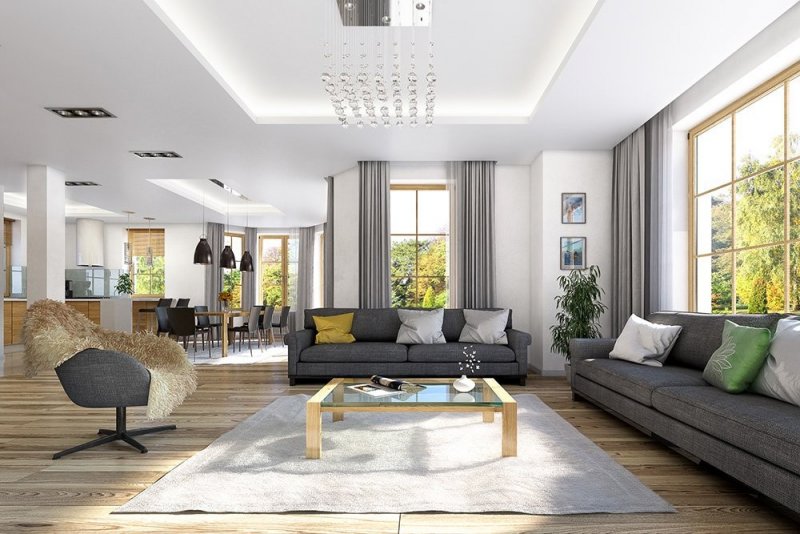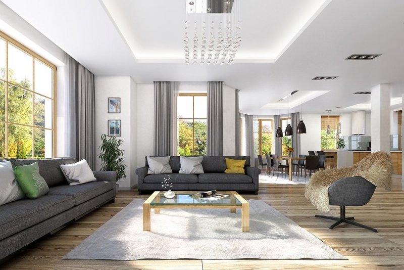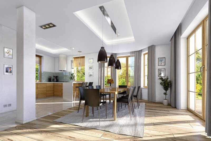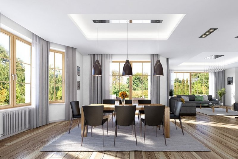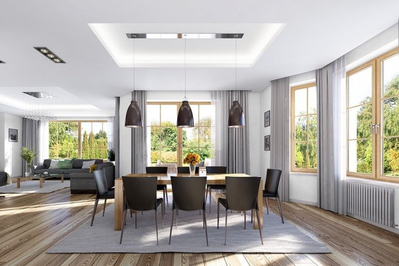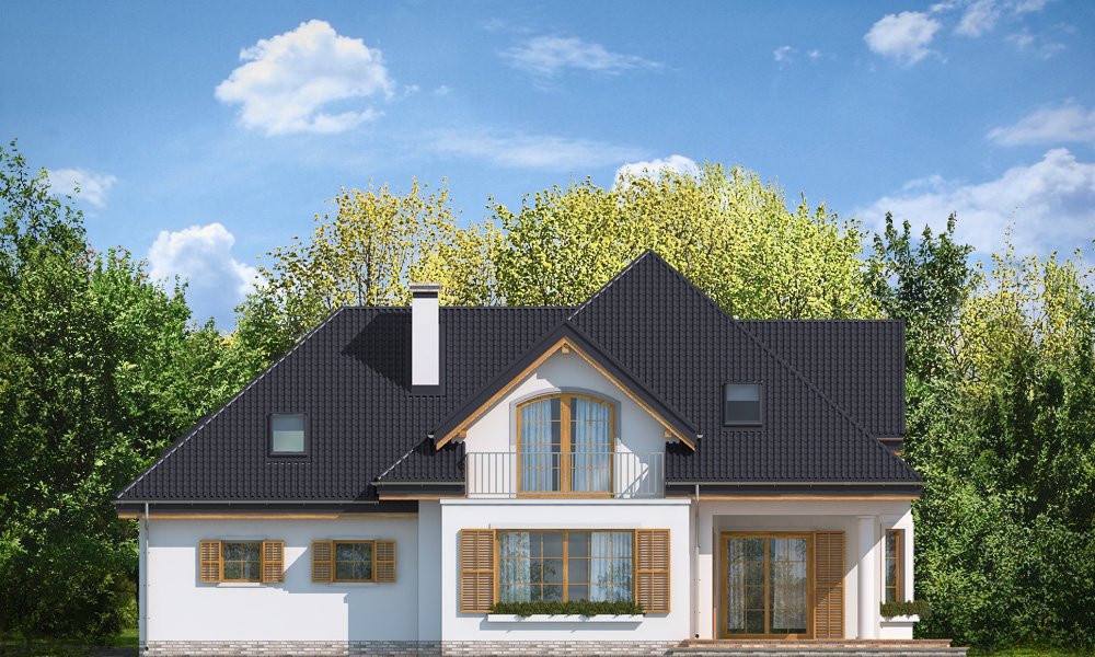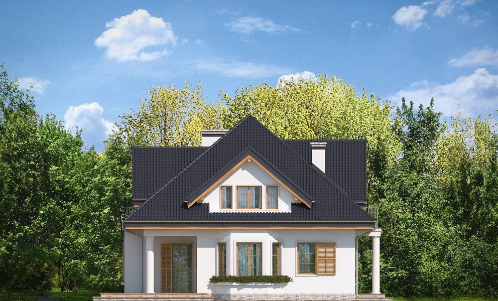 Willa Julia 2 jest jednym z dwóch najnowszych wersji cieszącego się popularnością projektu Julka. Domy są bardzo podobne do swojego pierwowzoru, pozmieniano w nich jednak i usprawniono niektóre rzeczy, wprowadzając rozwiązania Inwestorów budujących wcześniej Julkę. Willa Julia 2 to dom z poddaszem użytkowym, z dobudowaną częścią garażową z obszernym podwójnym garażem. Dom łączy w sobie nowoczesne materiały, detale i technologie, z klasyczną tradycyjną formą. Czterospadowy dach urozmaicony szerokimi lukarnami, w połączeniu ze ścianami tworzy proporcjonalny budynek o właściwej skali. Do budynku wchodzimy przez podcień wejściowy z balkonem na poddaszu, z kolumnami po bokach. Przez szerokie drzwi z naświetlami przechodzimy do wnętrza. Elewacja ogrodowa ozdobiona jest lukarną z balkonem, wykuszem salonu z pięknym dużym oknem, oraz podcieniem w narożniku budynku, zadaszającym część tarasu. Czarny dach i białe elewacje nadają budynkowi czystości i nowoczesnego wyrazu. We wnętrzu zaprojektowano na parterze dużą otwartą przestrzeń dzienną, z salonem, jadalnią, holem z wyeksponowanymi schodami, oraz kuchnią. Przy przedsionku zmieszczono przydatną szatnię, a po drugiej stronie dodatkowy pokój na parterze – biuro domowe, lub sypialnię gościnną. Pod schodami przechodzimy do dużego podwójnego garażu z dodatkową przestrzenią gospodarczą, oraz kotłowni. Na poddaszu mamy aż cztery pokoje, w tym sypialnię rodziców z garderobą, dużą łazienkę, oraz pralnię –suszarnię. Willa Julia 2 jest budynkiem energooszczędnym, bardzo dobrze ocieplonym, o zwartej bryle. Dom będzie prosty w budowie i niedrogi w późniejszym użytkowaniu. Zapraszamy.