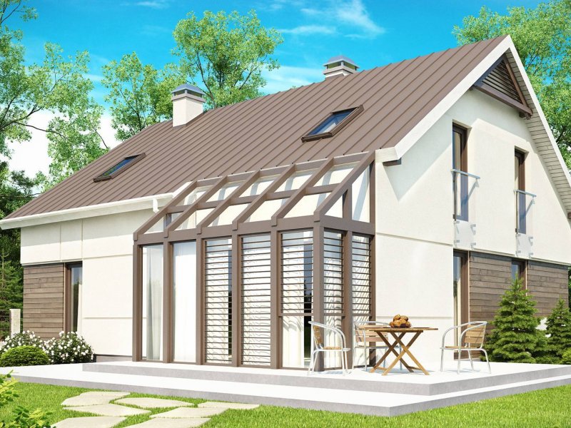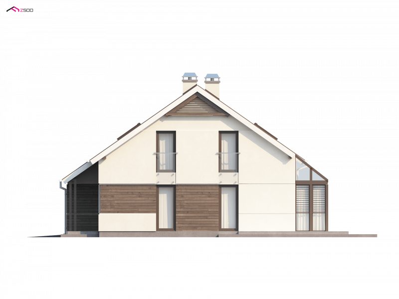 Z148 to dom o delikatnym, klasycznym charakterze. Prosta bryła i dwuspadowy dach czynią go tanią i ekonomiczną inwestycją. Jasne barwy ścian doskonale komponują się z ciemnym, naturalnym drewnem.
