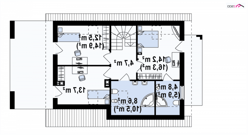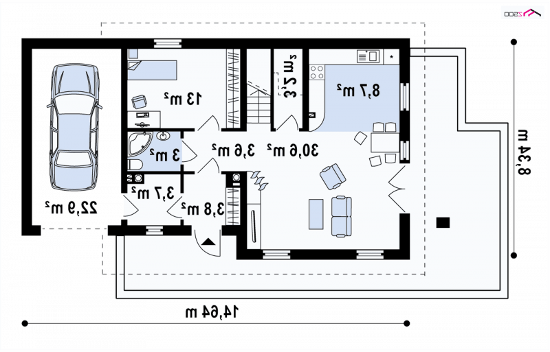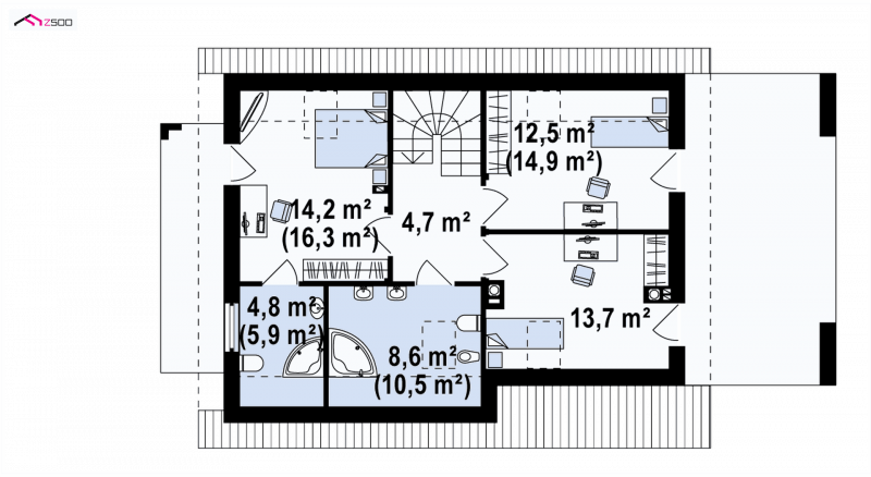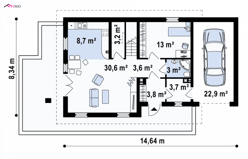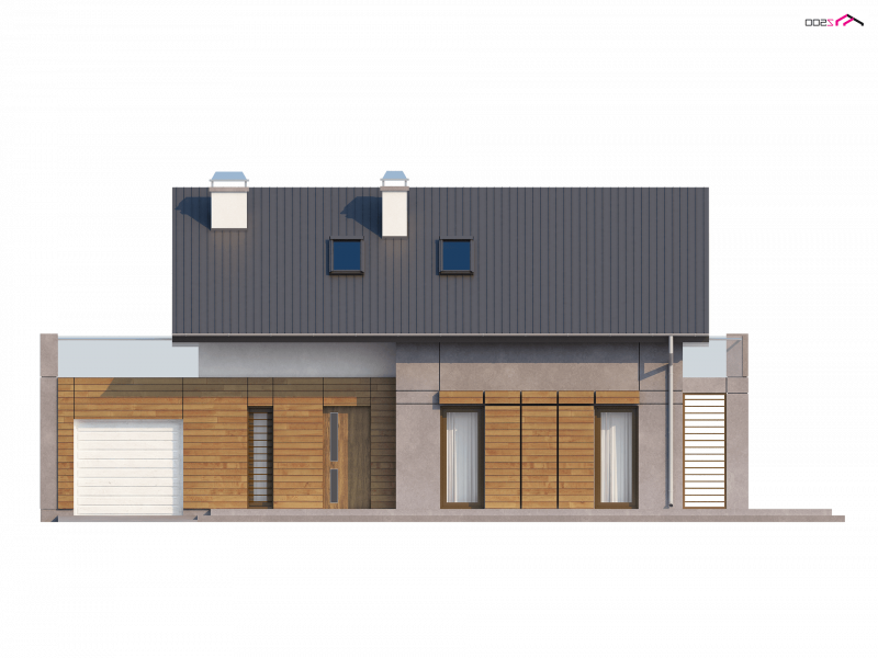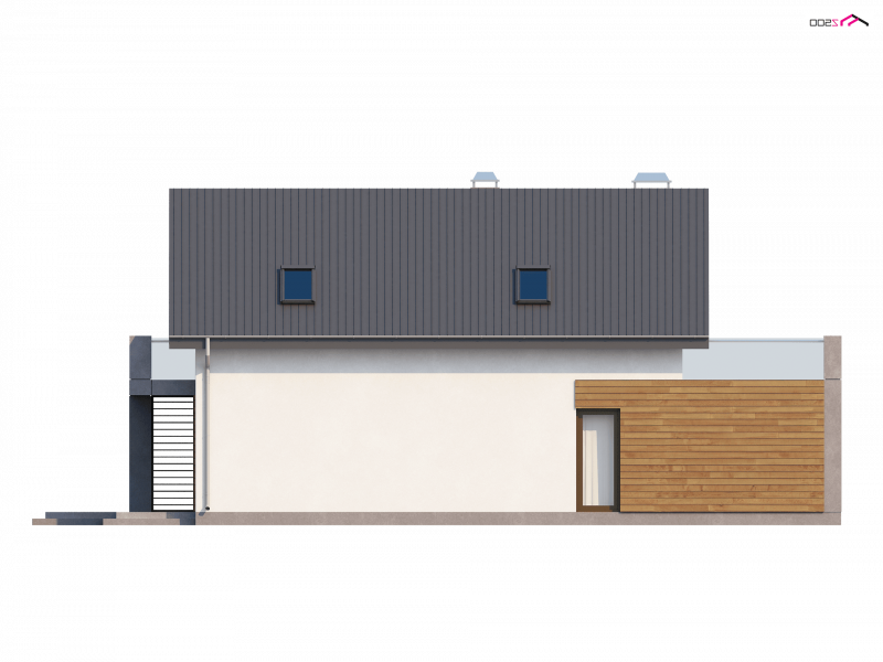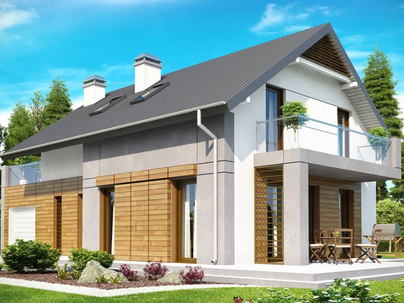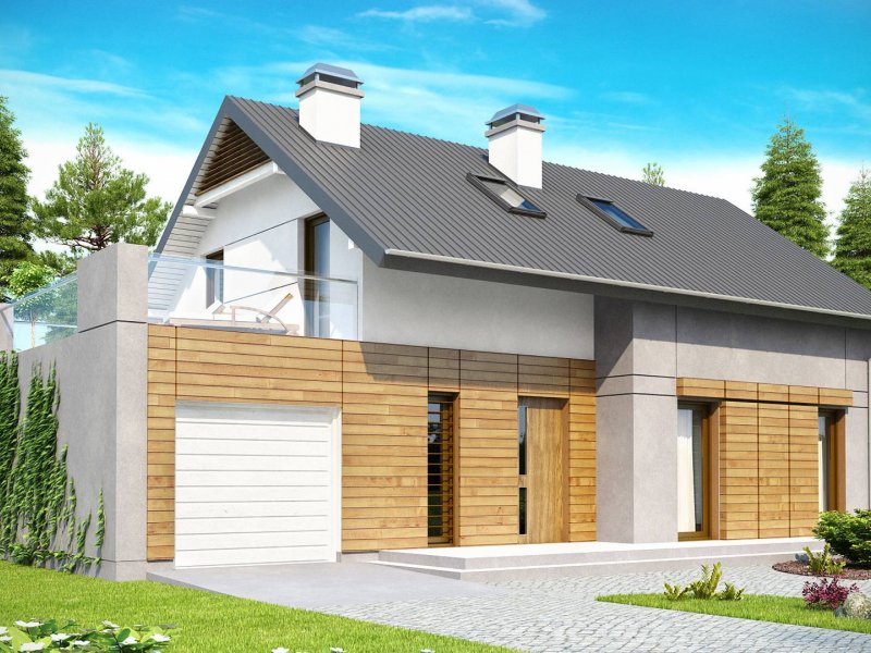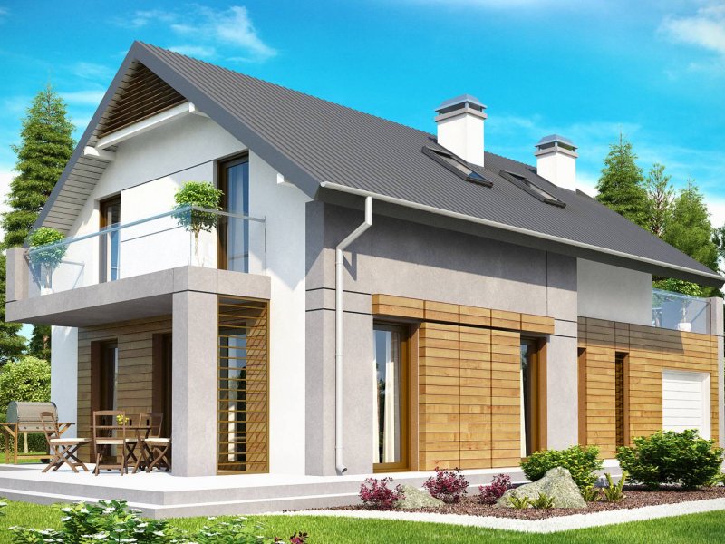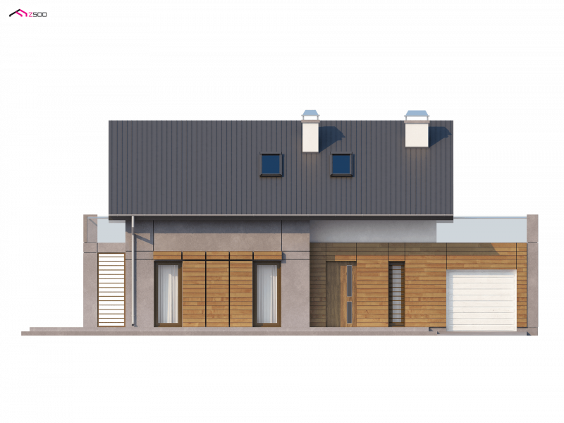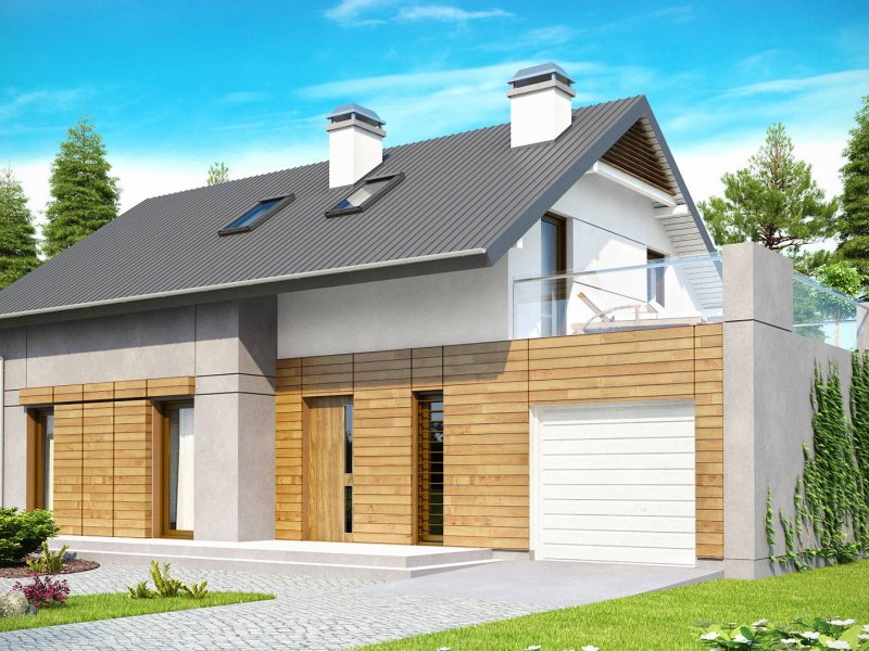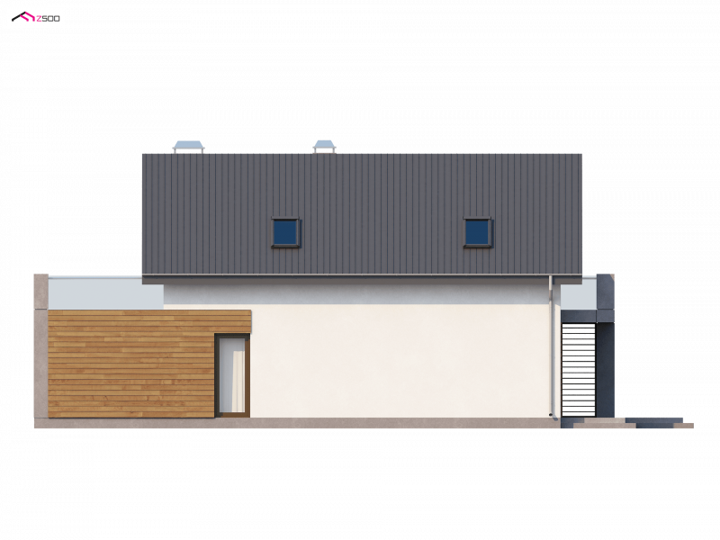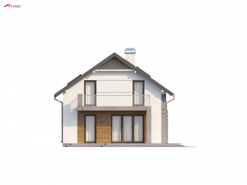 Z149 to projekt o klasycznej naturze i pionierskim charakterze. Prosta konstrukcja bryły budynku oraz dwuspadowy dach to łatwy przepis na tani i funkcjonalny dom. Spójną, harmonijną całość tworzą jasne barwy ścian i popielate dodatki, subtelnie połączone z drewnianymi elementami elewacji