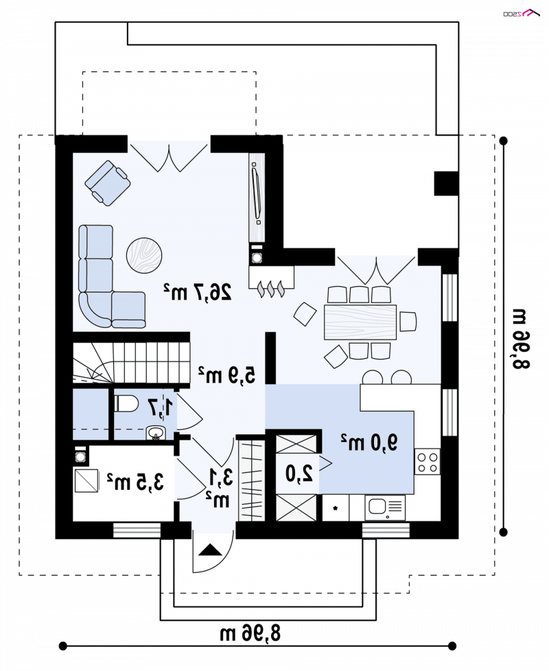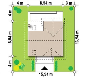 - Min. wymiary działki 16.96x15.96 m