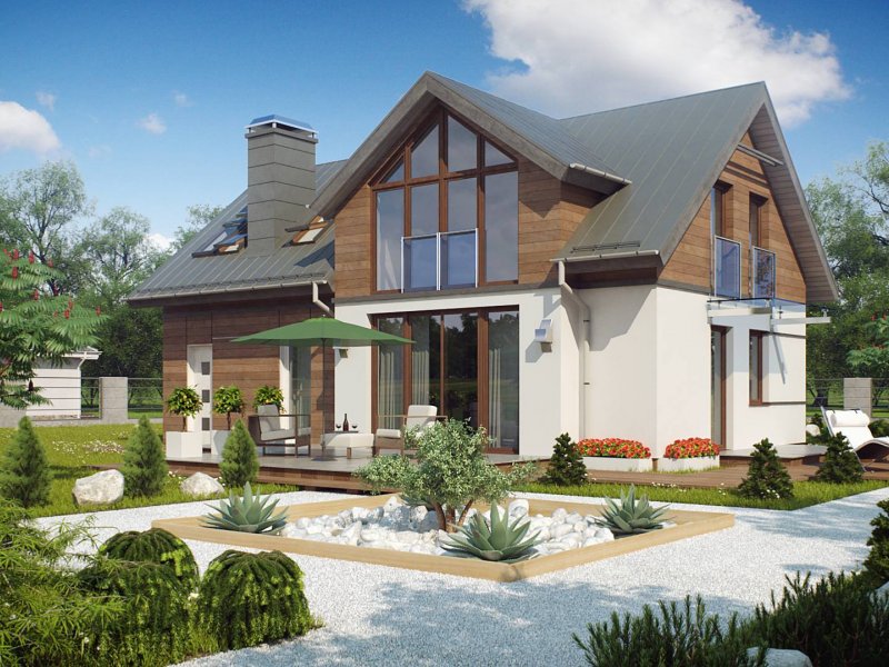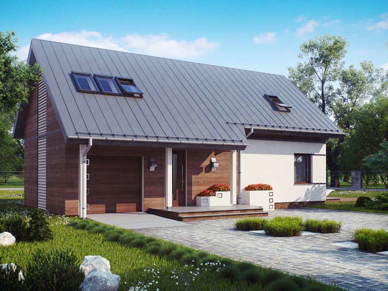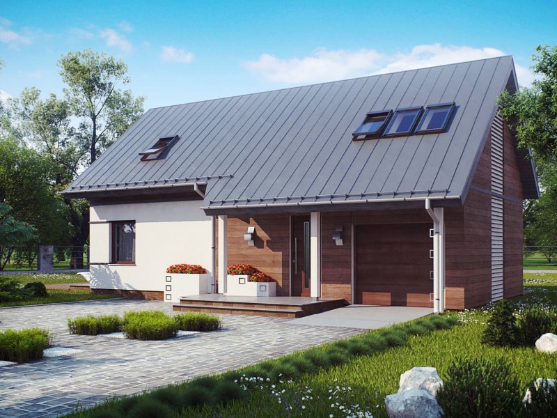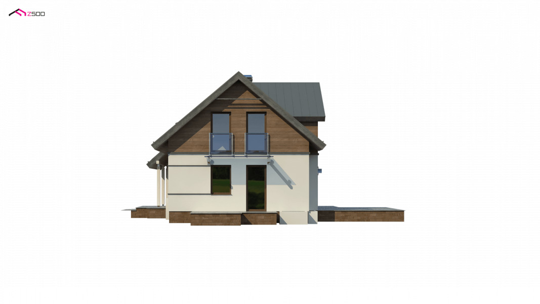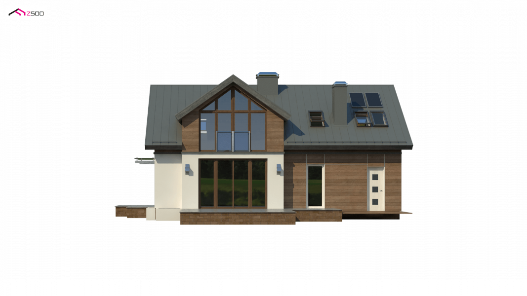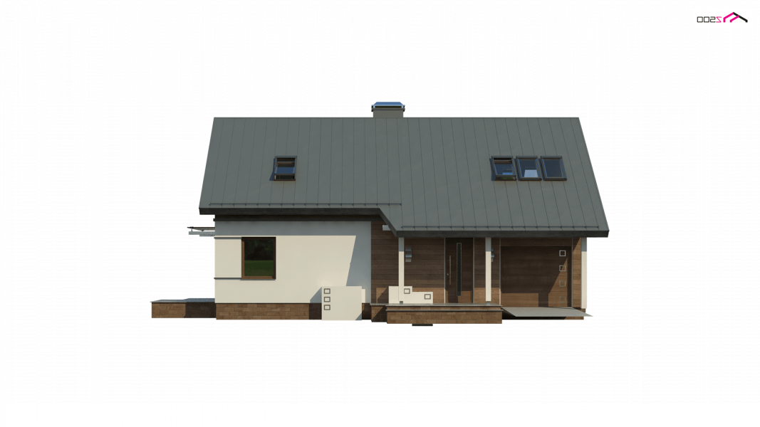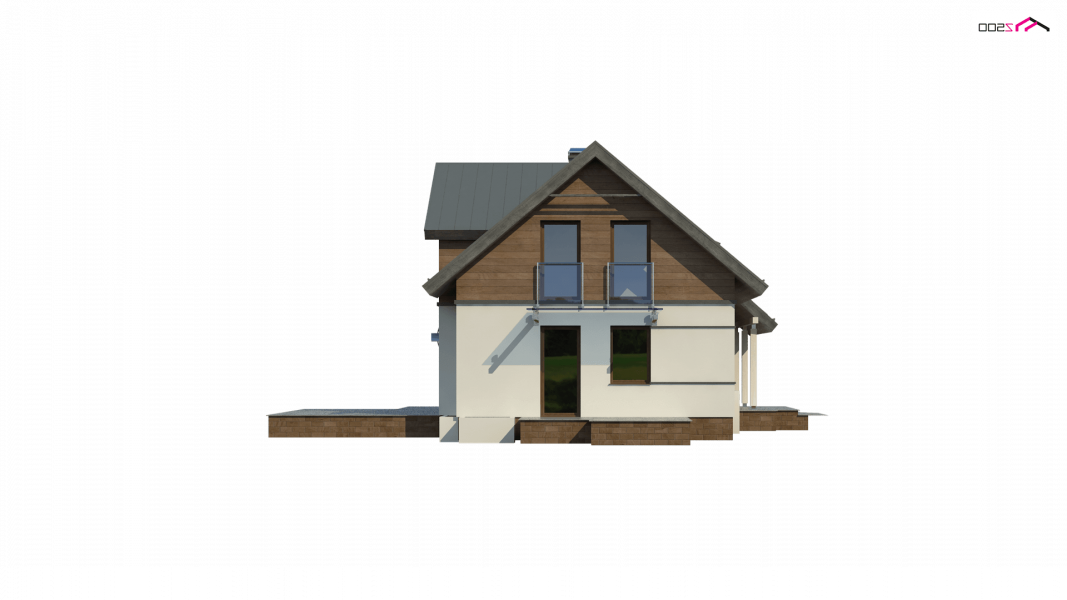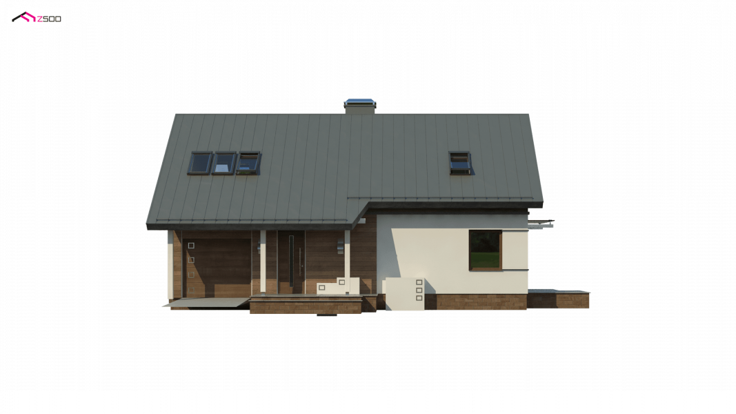 Z226 to propozycja domu z poddaszem użytkowym i garażem jednostanowiskowym. Nowoczesny wygląd zawdzięcza dużym przeszkleniom, oryginalnej lukarnie oraz starannie dobranym dodatkom.
