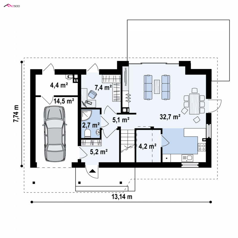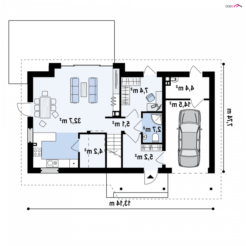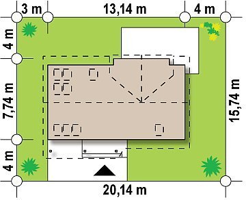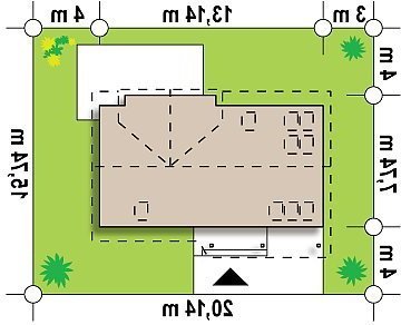 - Min. wymiary działki 15.74x20.14 m