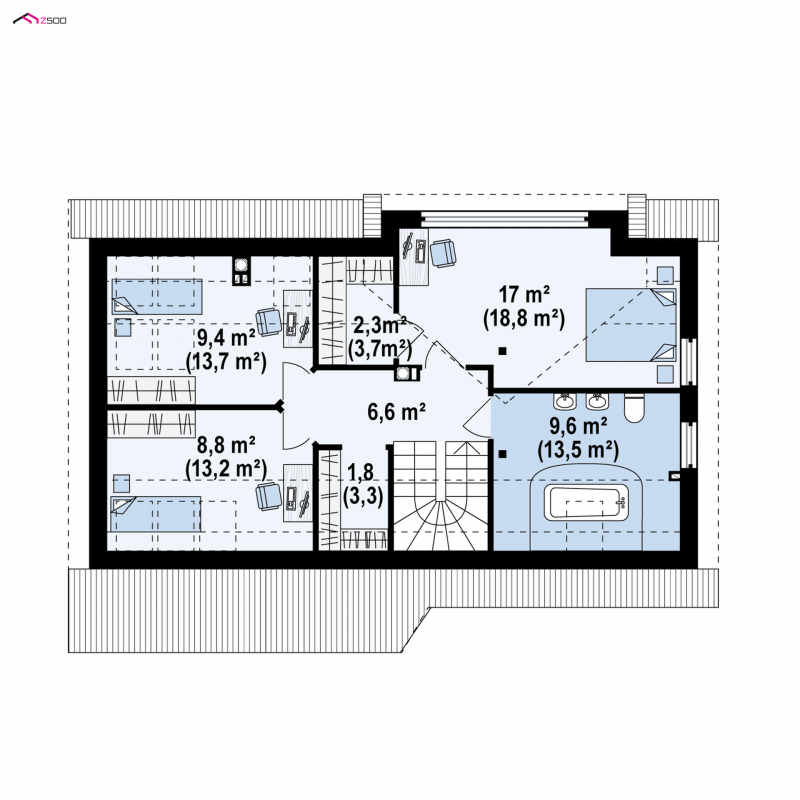 - Powierzchnia dachu 166.55 m²