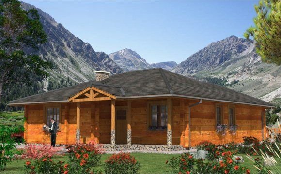 Ściany zewnętrzne: z bali drewnianych gr. 12, 16, 20, 24, 30 cm. ocieplone od wewnątrz wełną mineralną, gr. 52 cm bez ocieplenia
