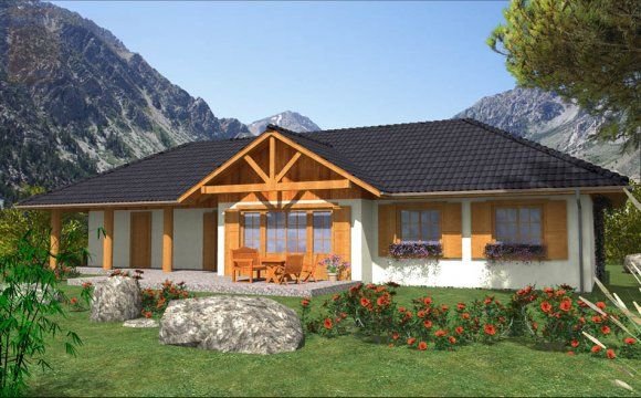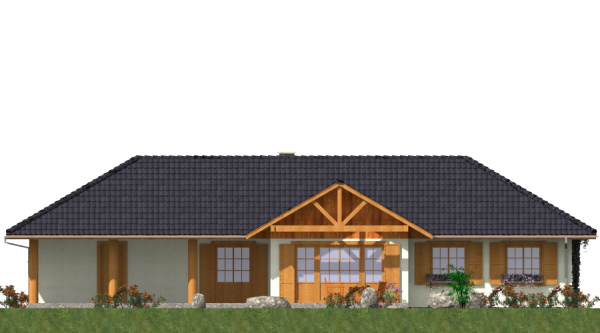 Fundamenty: żelbetowe, wylewane Ściany zewnętrzne: szkieletowe, ocieplone wełną mineralną Strop: belkowy, drewniany,otwarty Pokrycie dachu: dachówka betonowa