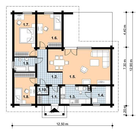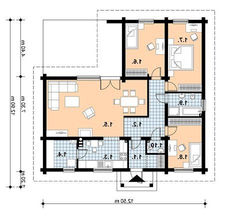 Budynek jednorodzinny, parterowy, niepodpiwniczony, 4 pokoje, kuchnia,