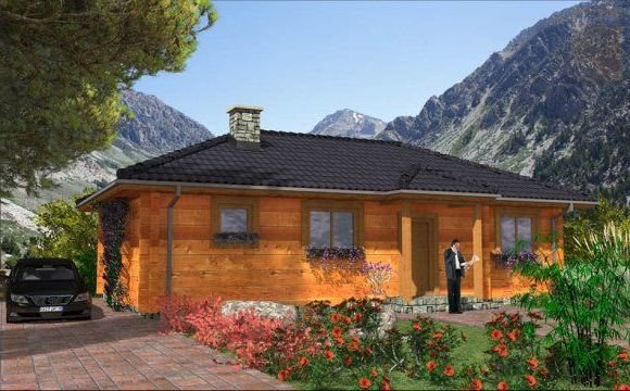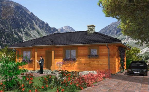 Ściany zewnętrzne: z bali drewnianych gr. 12, 16, 20, 24, 30 cm. ocieplone od wewnątrz wełną mineralną, gr. 52 cm bez ocieplenia