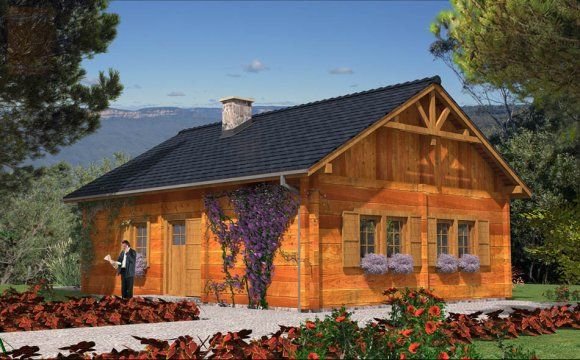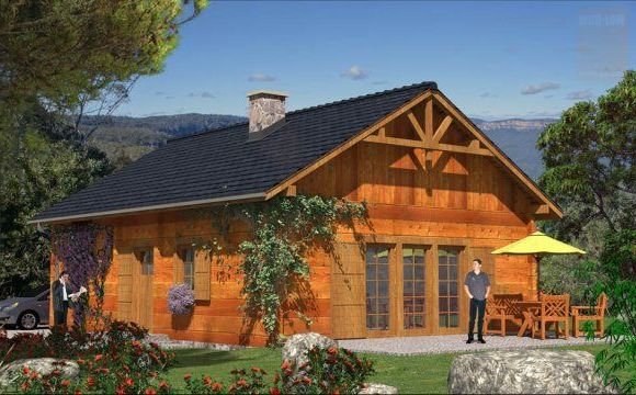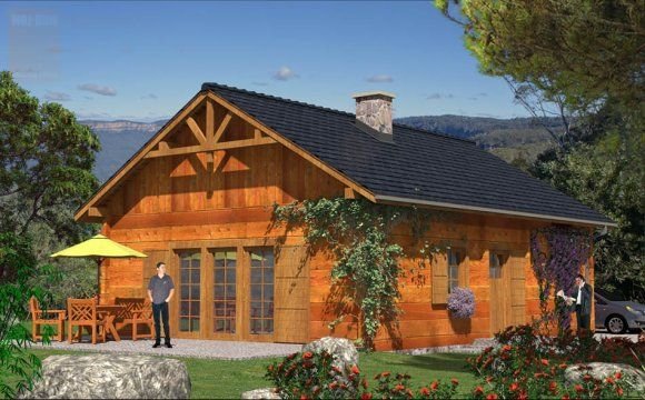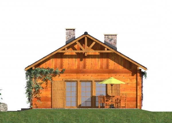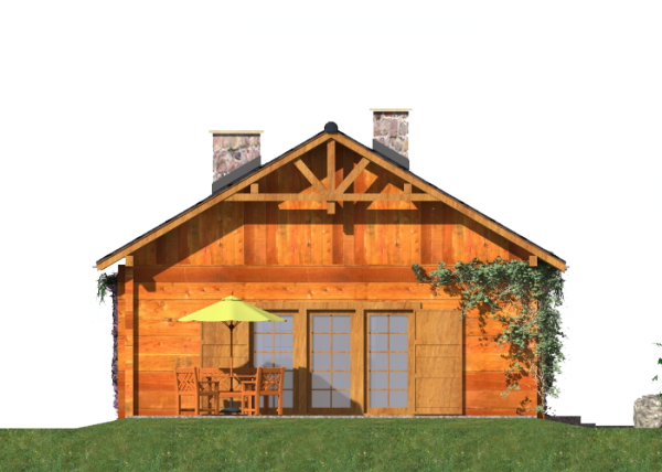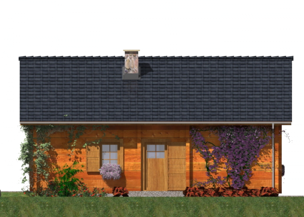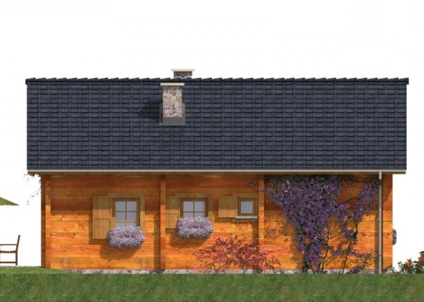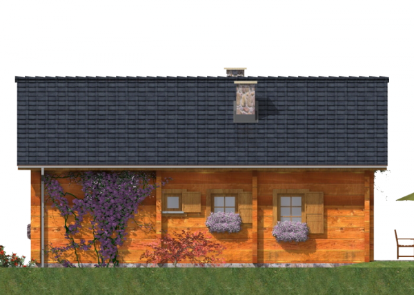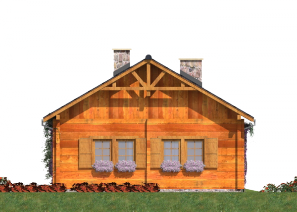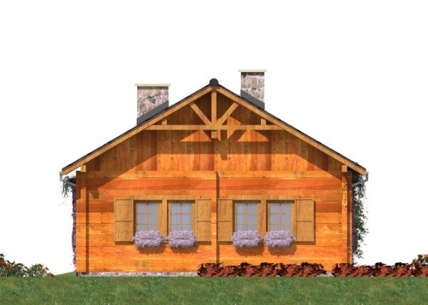 Ściany zewnętrzne: z bali drewnianych gr. 16 plus ocieplenie 12 cm. Projekt dopuszcza ściany grubości 12, 20, 24, 30 cm ocieplone od wewnątrz wełną mineralną oraz gr. 62 cm bez ocieplenia.