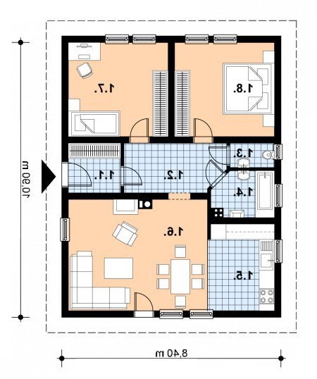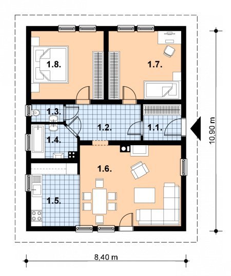 Budynek jednorodzinny, parterowy, niepodpiwniczony.