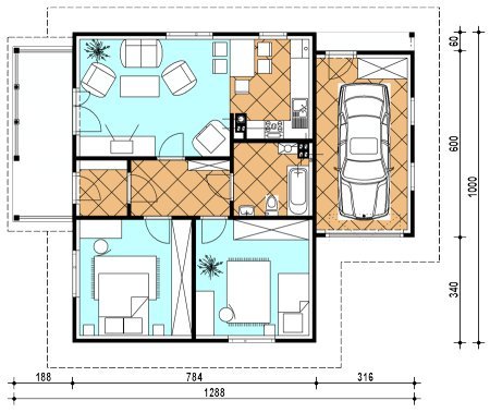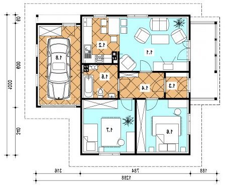 Budynek jednorodzinny, parterowy, niepodpiwniczony, 3 pokoje, kuchnia, garaż
