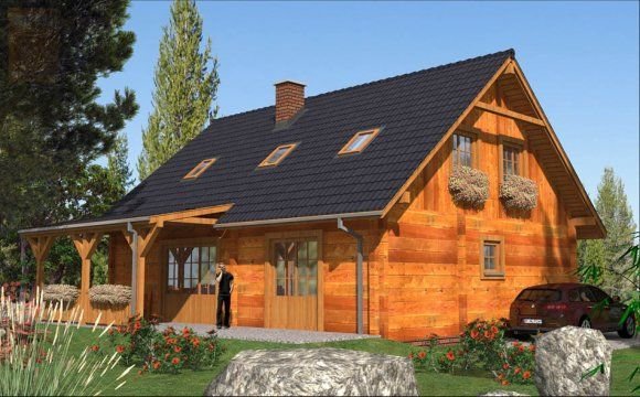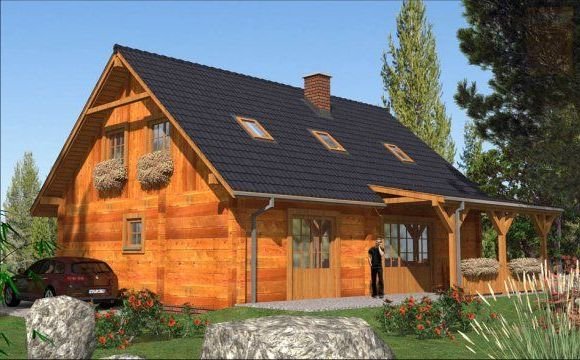 Ściany zewnętrzne: z bali drewnianych gr. 12, 16, 20, 24, 30 cm. ocieplone od wewnątrz wełną mineralną, gr. 52 cm bez ocieplenia
