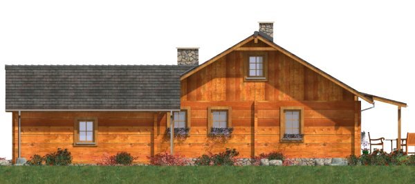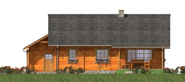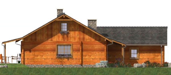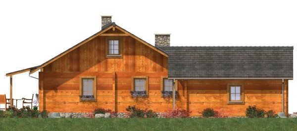 Ściany zewnętrzne: z bali drewnianych gr. 12, 16, 20, 24, 30 cm. ocieplone od wewnątrz wełną mineralną, gr. 52 cm bez ocieplenia