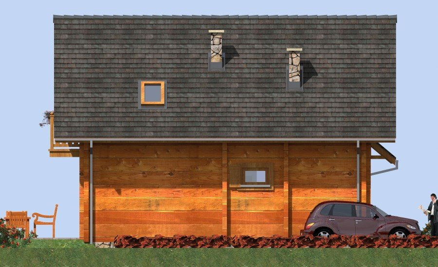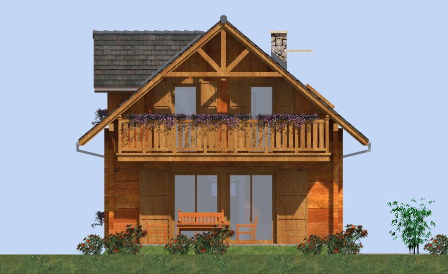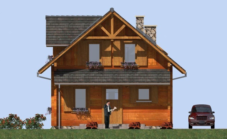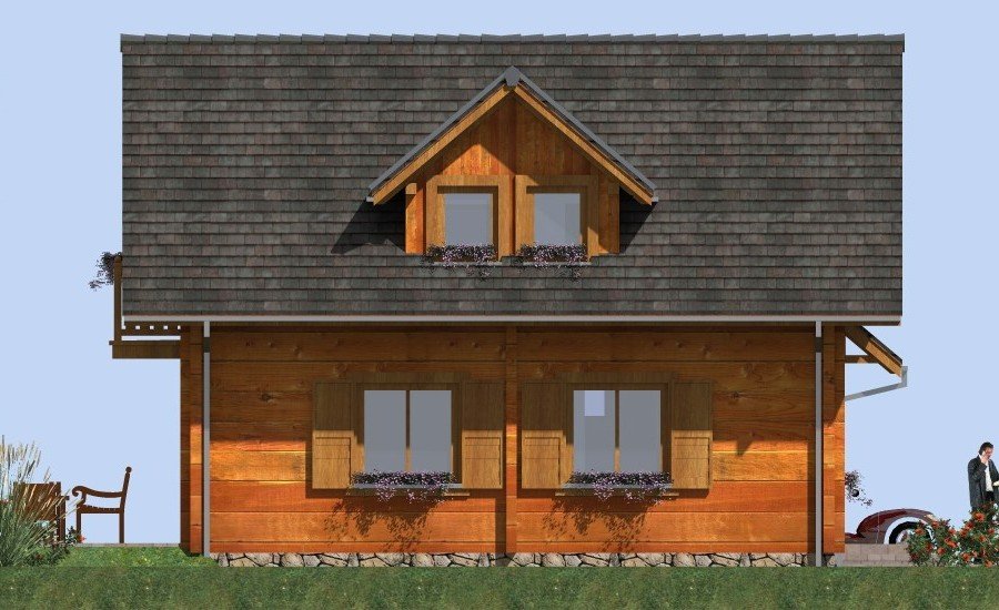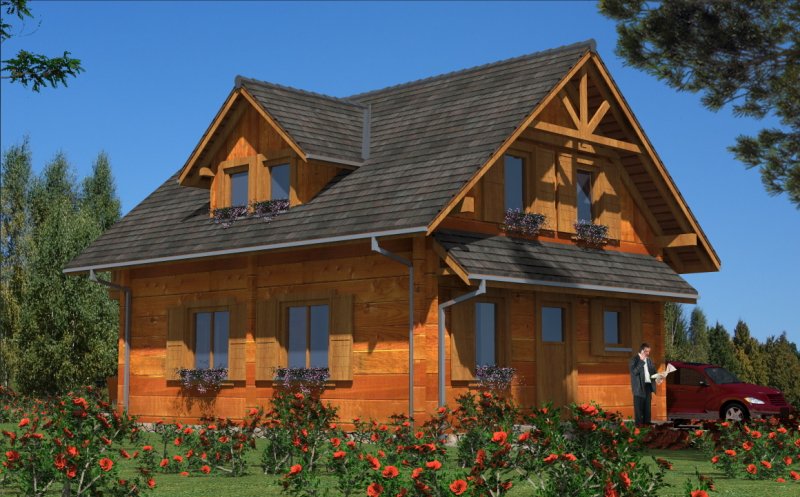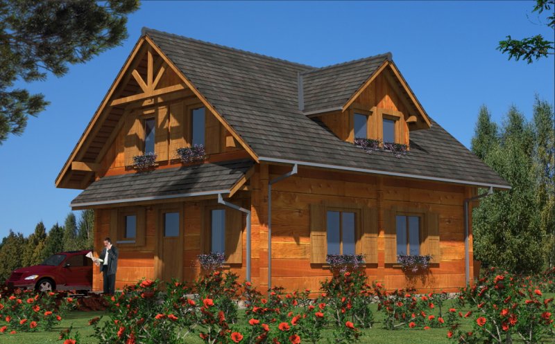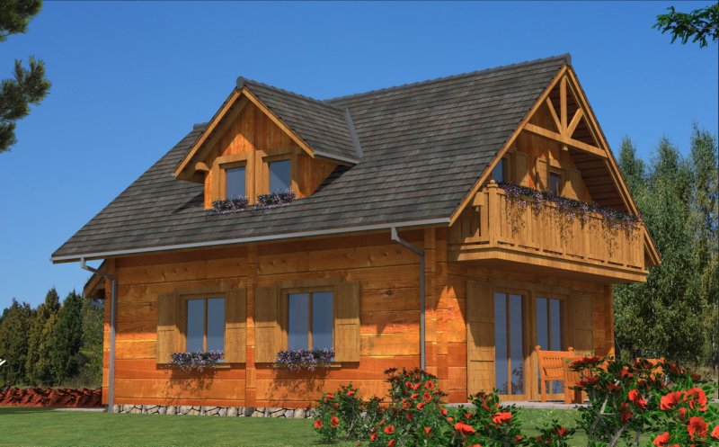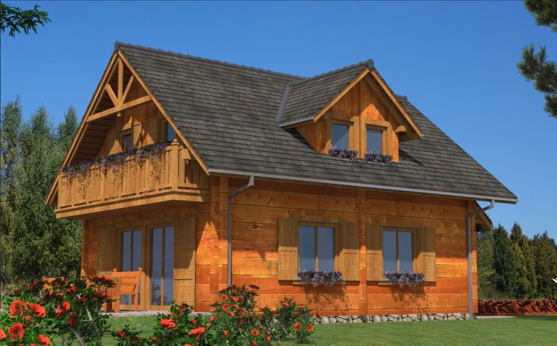 Ściany zewnętrzne: z bali drewnianych gr. 16 plus ocieplenie 12 cm.