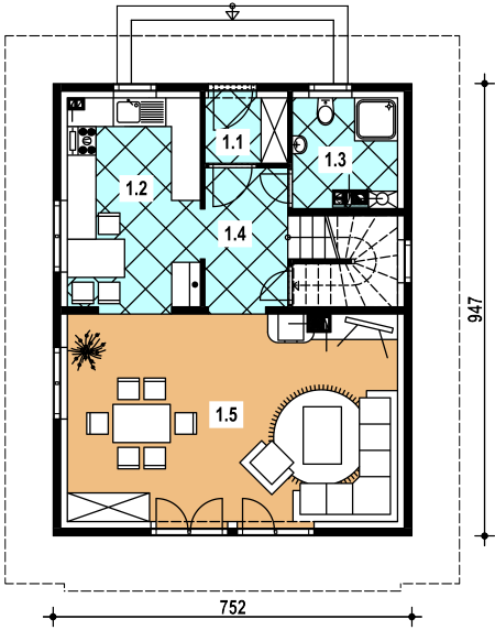 Projekt dopuszcza ściany grubości 12, 20, 24, 30 cm ocieplone
