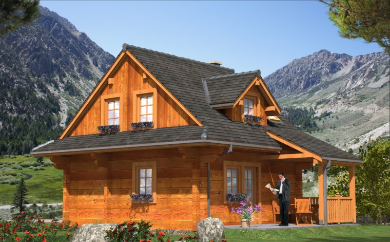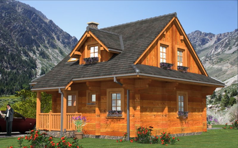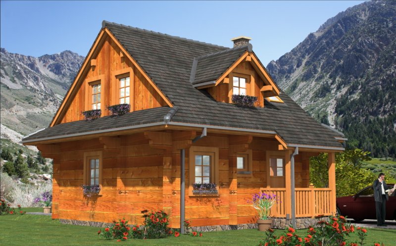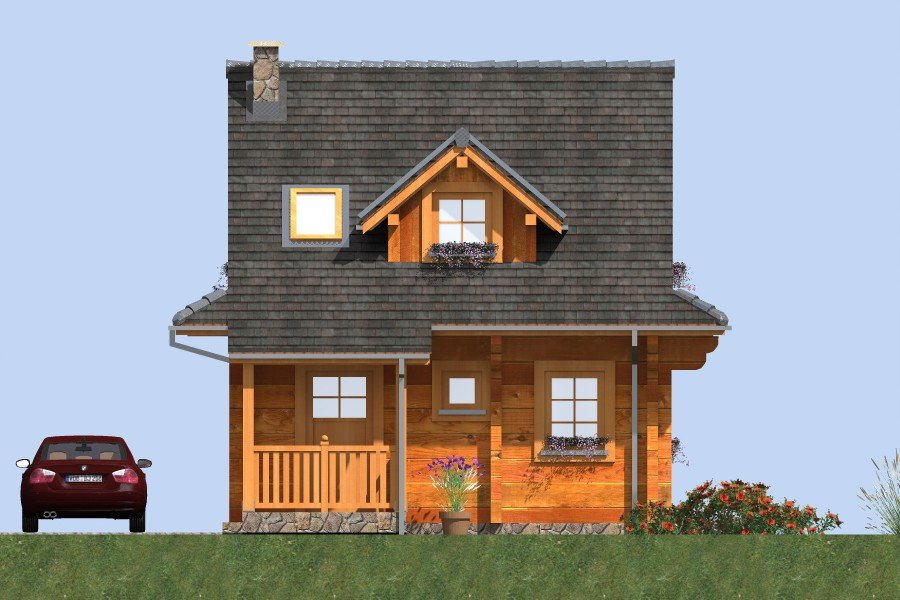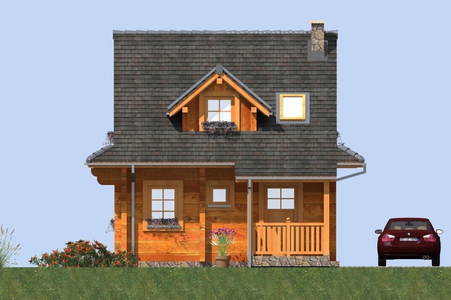 Budynek jednorodzinny z poddaszem użytkowym w technologi bala drewnianego