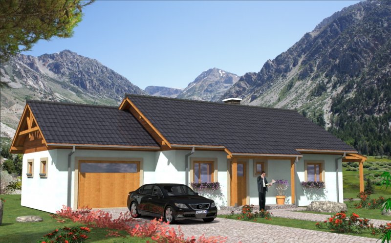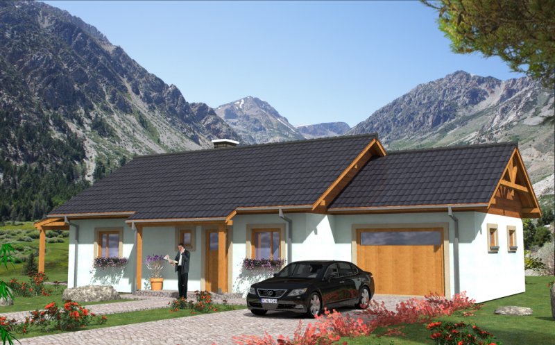 Budynek jednorodzinny, parterowy, niepodpiwniczony, 4 pokoje, kuchnia, garaż.