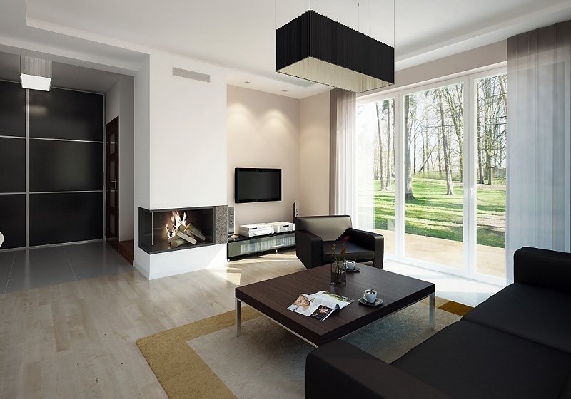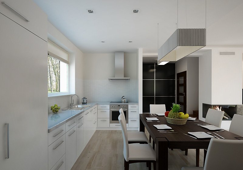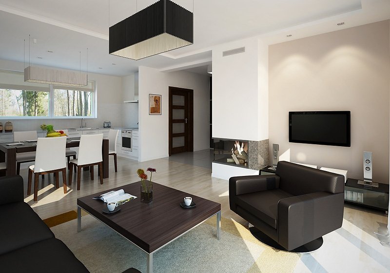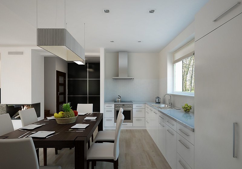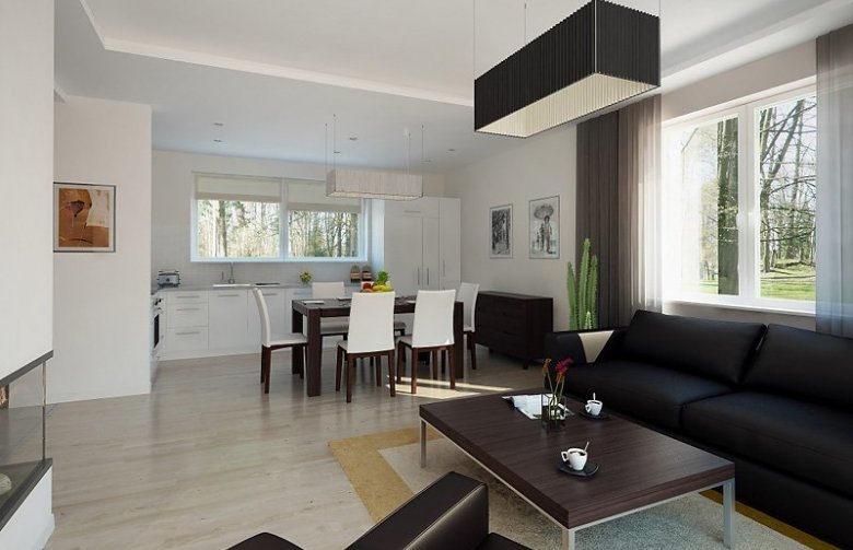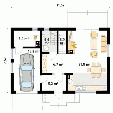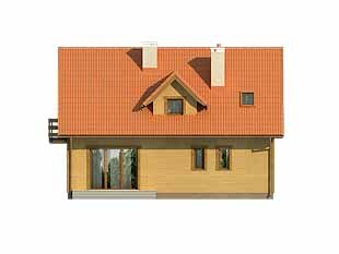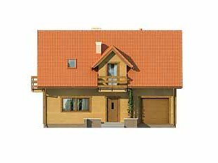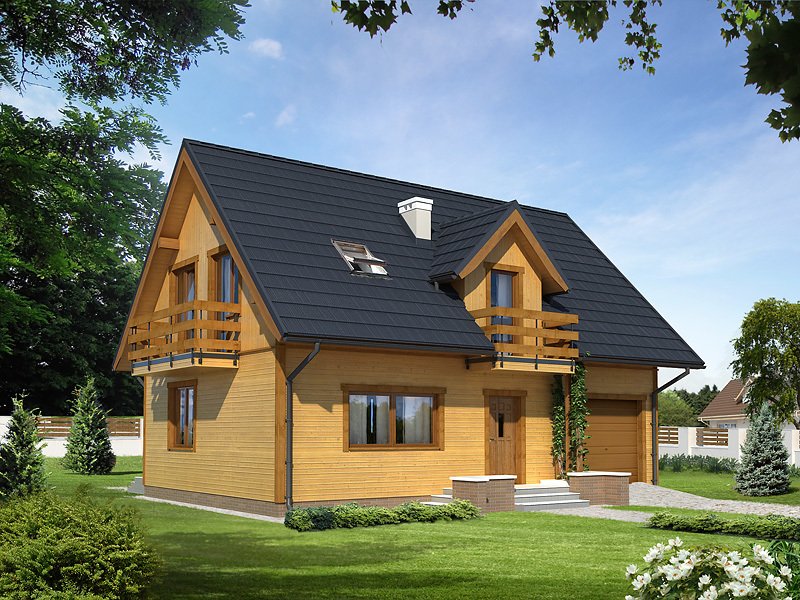 Mały dom jednorodzinny z użytkowym poddaszem i garażem w bryle budynku. Idealny dla niewielkiej rodziny.