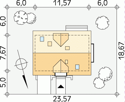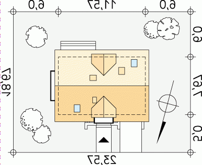 - Min. wymiary działki 23.57x19.67 m