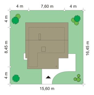 - Min. wymiary działki 15.60x15.60 m