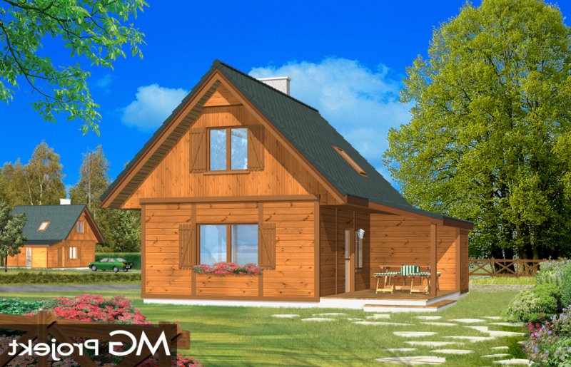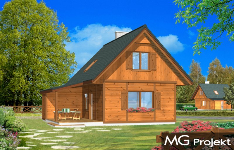 Francik z tarasem to nieduży domek o prostej, niedrogiej bryle, przekryty dwuspadowym dachem z dobudowanym zadaszonym tarasem. Ozdobą domu jest taras o powierzchni ponad 12 m2 stanowiący przedłużenie salonu. Na parterze prócz pokoju dziennego z kominkiem zaprojektowano również kuchnię, łazienkę i pomieszczenie gospodarcze dostępne z zewnątrz. Na poddaszu mieszczą się dwie sypialnie. Pracownia posiada projekt w wersji bez tarasu zadaszonego - w technologii murowanej i drewnianej.