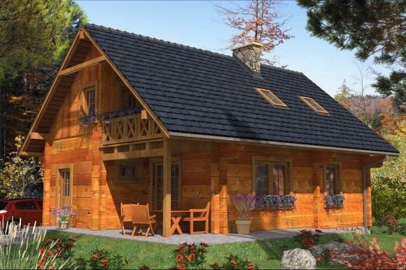 Ściany zewnętrzne: z bali drewnianych gr. 12, 16, 20, 24 cm. ocieplone od wewnątrz wełną mineralną lub 52 cm bez ocieplenia