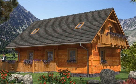 Ściany zewnętrzne: z bali drewnianych gr. 12, 16, 20, 24 cm. ocieplone od wewnątrz wełną mineralną lub 52cm bez ocieplenia