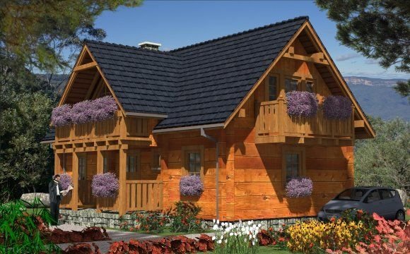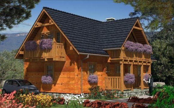 Ściany zewnętrzne: z bali drewnianych gr. 12, 16, 20, 24 cm. ocieplone od wewnątrz wełną mineralną
