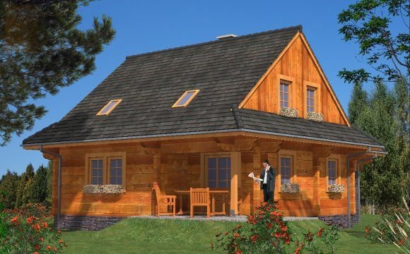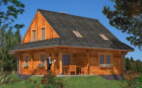 Ściany zewnętrzne: z bali drewnianych gr. 12, 16, 20, 24 cm. ocieplone od wewnątrz wełną mineralną lub 30 cm bez ocieplenia