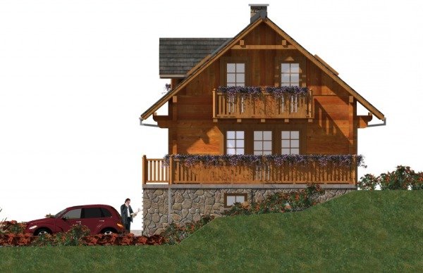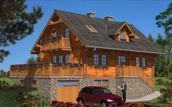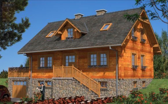 Ściany zewnętrzne: z bali drewnianych gr. 12, 16, 20, 24 cm. ocieplone od wewnątrz wełną mineralną lub 52 cm bez ocieplenia