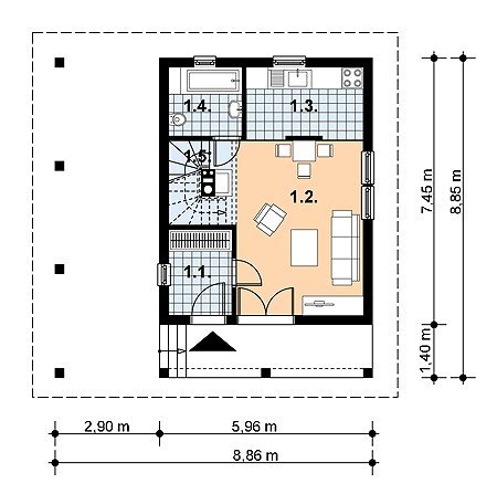 - Powierzchnia zabudowy 44.40 m²