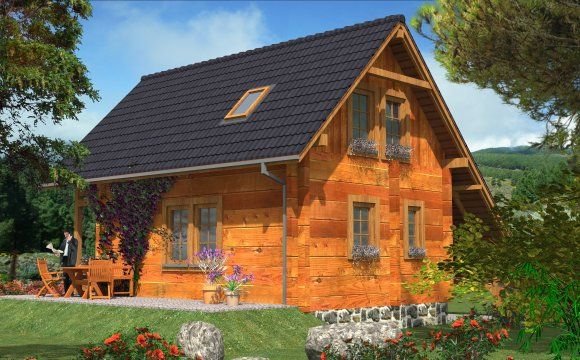 Ściany zewnętrzne: z bali drewnianych gr. 12, 16, 20, 24 cm. ocieplone od wewnątrz wełną mineralną lub 52 cm bez ocieplenia
