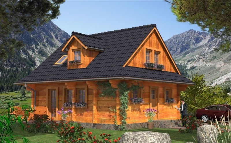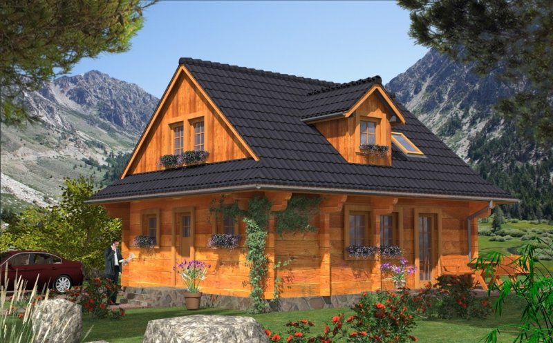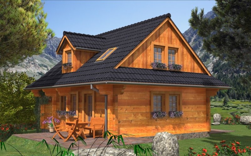Ściany zewnętrzne: z bali drewnianych gr. 16 plus ocieplenie 12 cm.